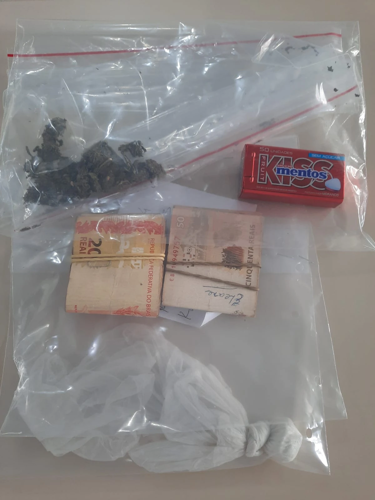 Em um dos lugares, foram encontradas pelo cão farejador duas porções de substância entorpecente e também aparelhos celulares. Em outro local, foram encontrados diversos produtos de origem ilícita e acessórios para a fabricação de munições, além de frascos utilizados para armazenamento de crack para venda e uma porção de maconha (encontrados pelo cão farejador).