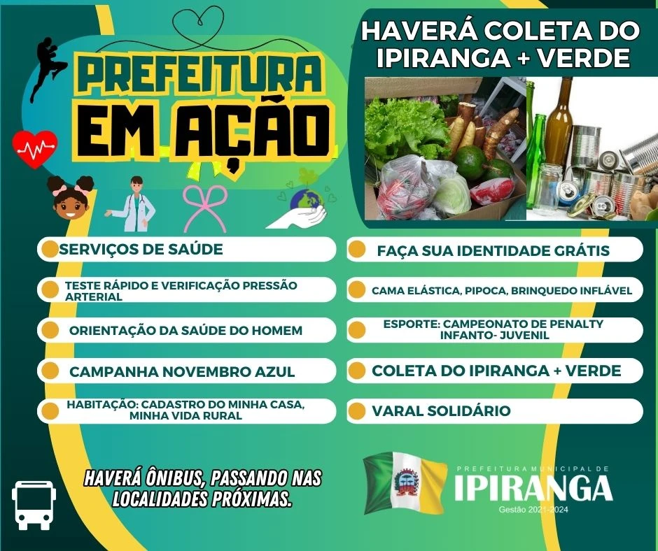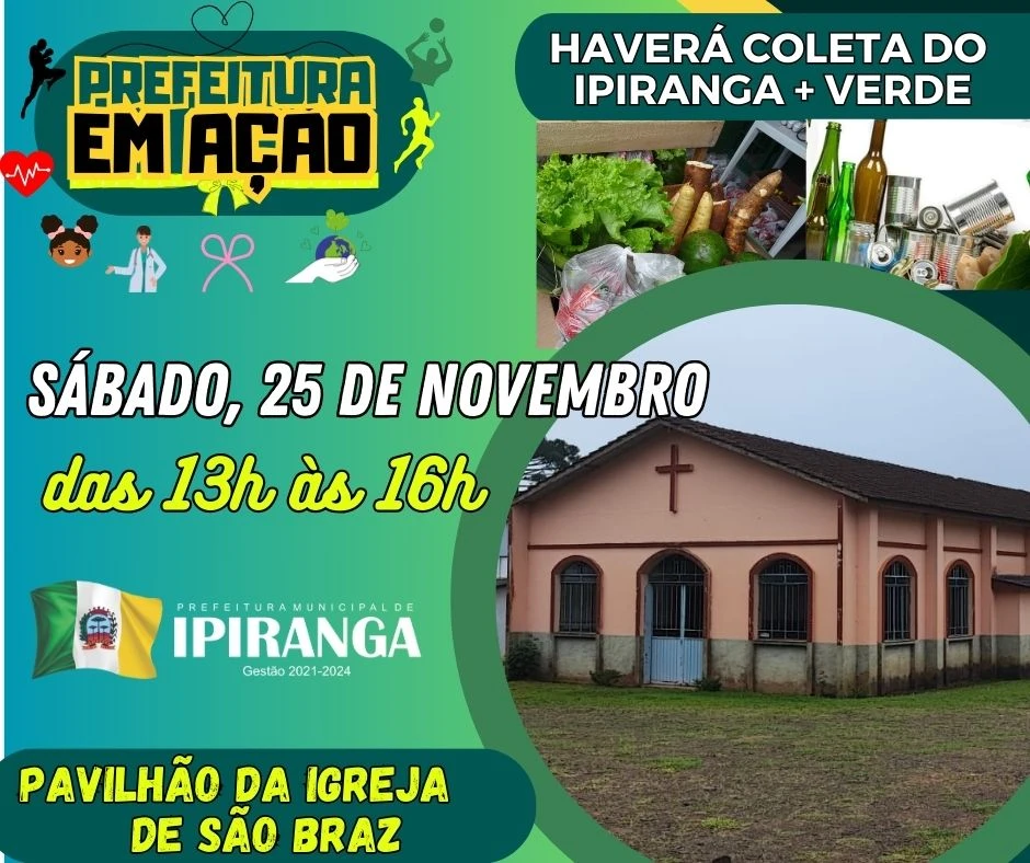 A Prefeitura Municipal de Ipiranga promove o 'Prefeitura em Ação', no dia 25 de novembro, no pavilhão da Igreja de São Braz.