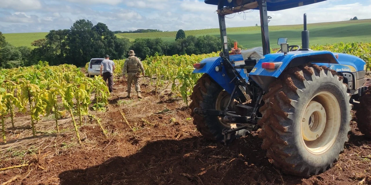 Após alguns quilômetros de acompanhamento, o veículo entrou em uma propriedade rural, onde perdeu o controle e ficou imobilizado em uma área de plantação.