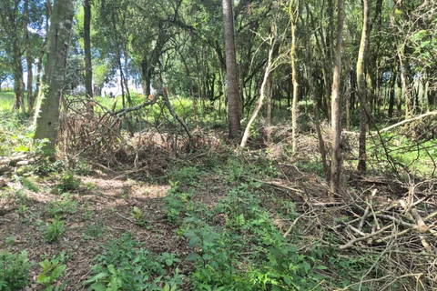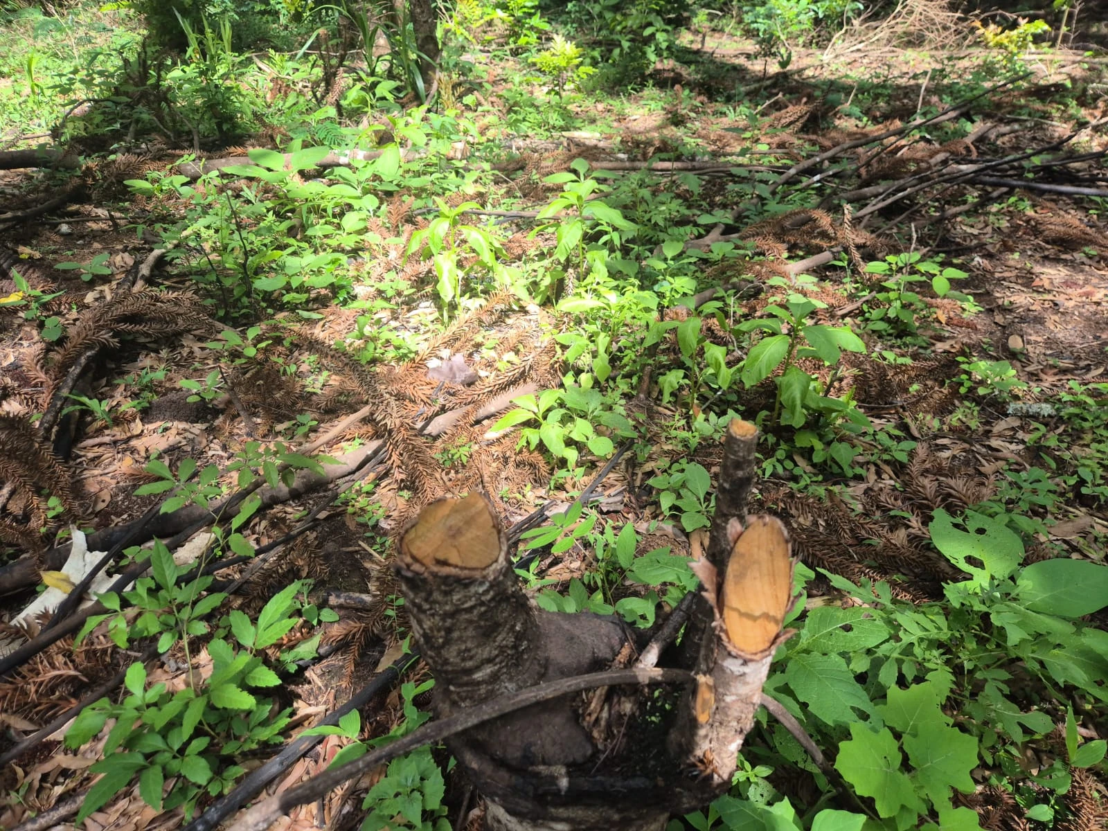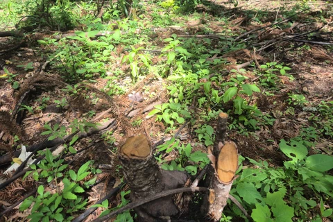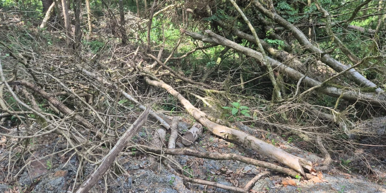 Na primeira propriedade fiscalizada, a equipe policial constatou dano em floresta nativa pertencente ao bioma Mata Atlântica, por conta de corte de árvores e destoca, em uma área de aproximadamente 0,60 hectare.