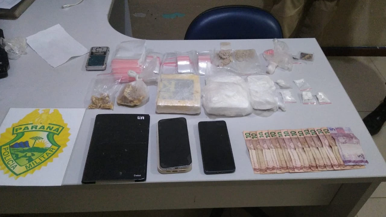 Foram apreendidos 1,85 kg de cocaína, 100 g de crack, 43 g de ecstasy, 13 unidades de “bala” (droga sintética), duas balanças de precisão, dois aparelhos celulares, embalagens plásticas tipo ziplock e dinheiro em espécie.
