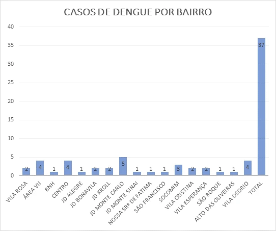 Os dados da SMS mostram que de janeiro até o mês de abril foram contabilizadas 140 notificações, sendo que 37 foram confirmadas e 96 descartadas.