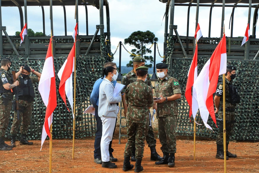 O diretor de Patrimônio Imobiliário e Meio Ambiente do Exército, general Paulo Alípio Branco Valença, o comandante da 5ª Divisão de Exército, general José Russo Assumpção Penteado, e uma comitiva técnica de engenheiros fizeram um sobrevoo e depois vistoriaram o terreno onde a escola pode ser implantada.