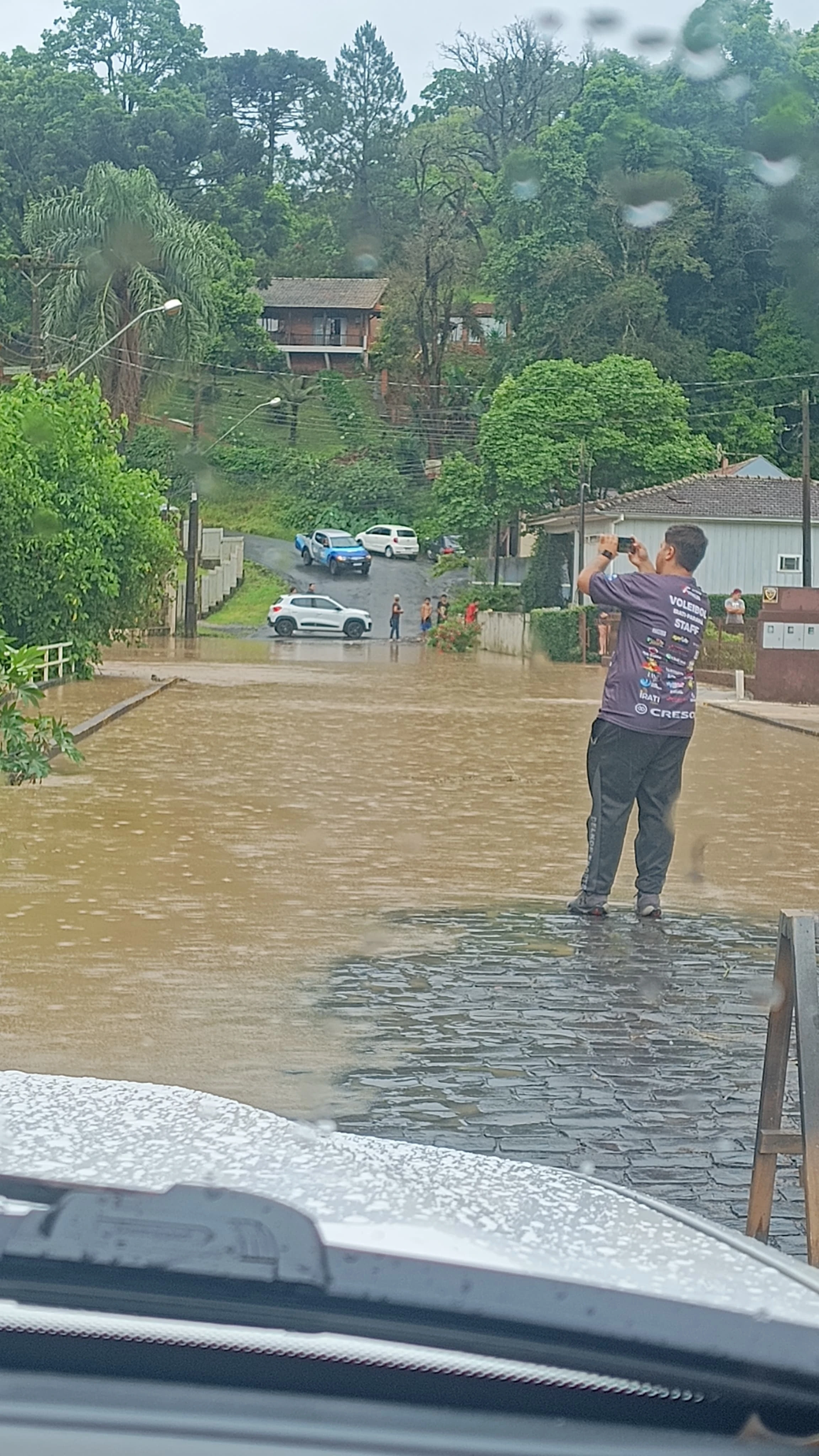 Imagens divulgadas nas redes sociais mostram residências e estabelecimentos comerciais invadidos pela água.
