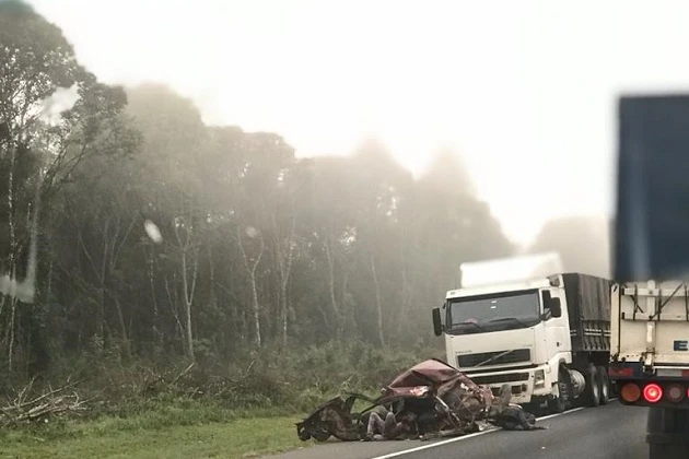 Equipes da Polícia Rodoviária Federal se deslocaram na manhã desta quinta-feira (03), por volta das 06h, para atender um grave acidente de trânsito. O caso aconteceu na BR-373 (km 225), próximo ao trevo de acesso a cidade de Imbituva. O acidente inicou quando um VW/Gol, que segui para Guarapuava, colidiu frontalmente com um caminhão Mercedes Benz. Logo em seguida, outros caminhões colidiram nos veículos acidentados, sendo estes um Volvo (bitrem) e um Ford/Cargo.