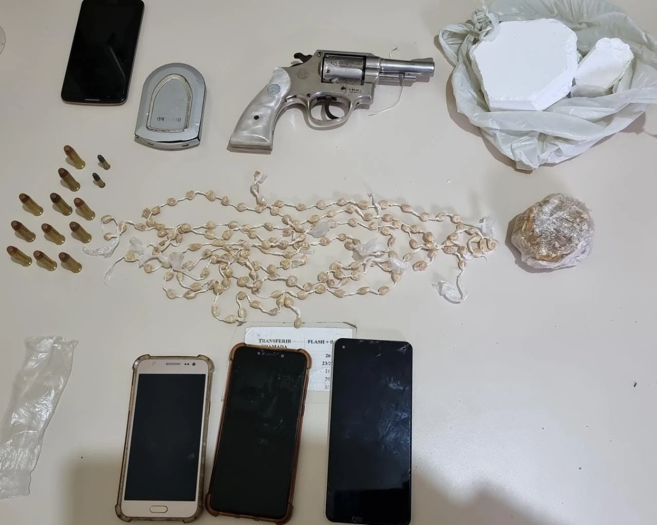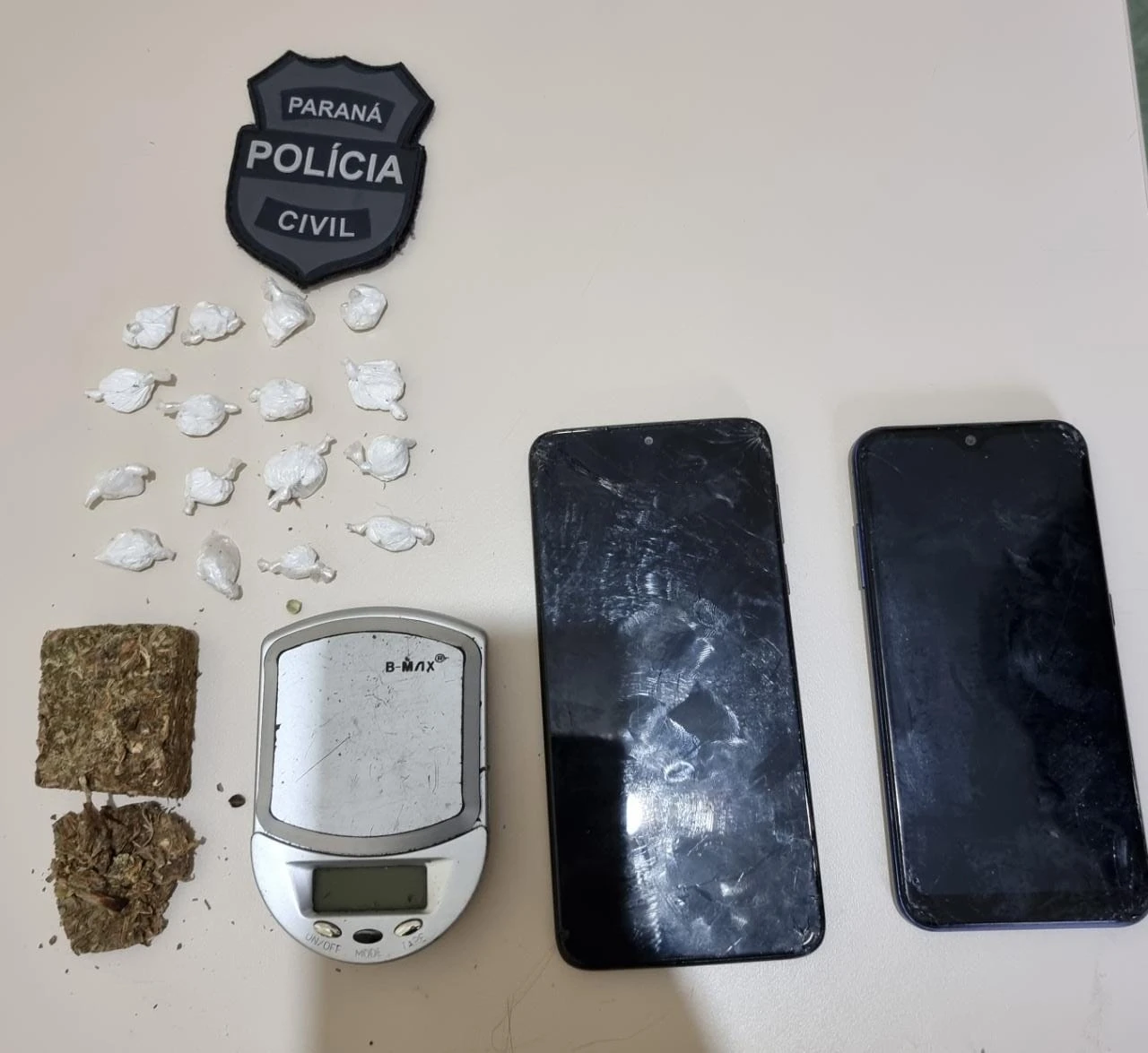 Cerca de 40 policiais civis, com apoio de cães farejadores da PCPR, participaram da ação. Nas buscas foram apreendidos um revólver, munições, espingardas, 2,5 quilos de maconha, 170 gramas de crack, 360 gramas de cocaína, celulares e balanças de precisão.