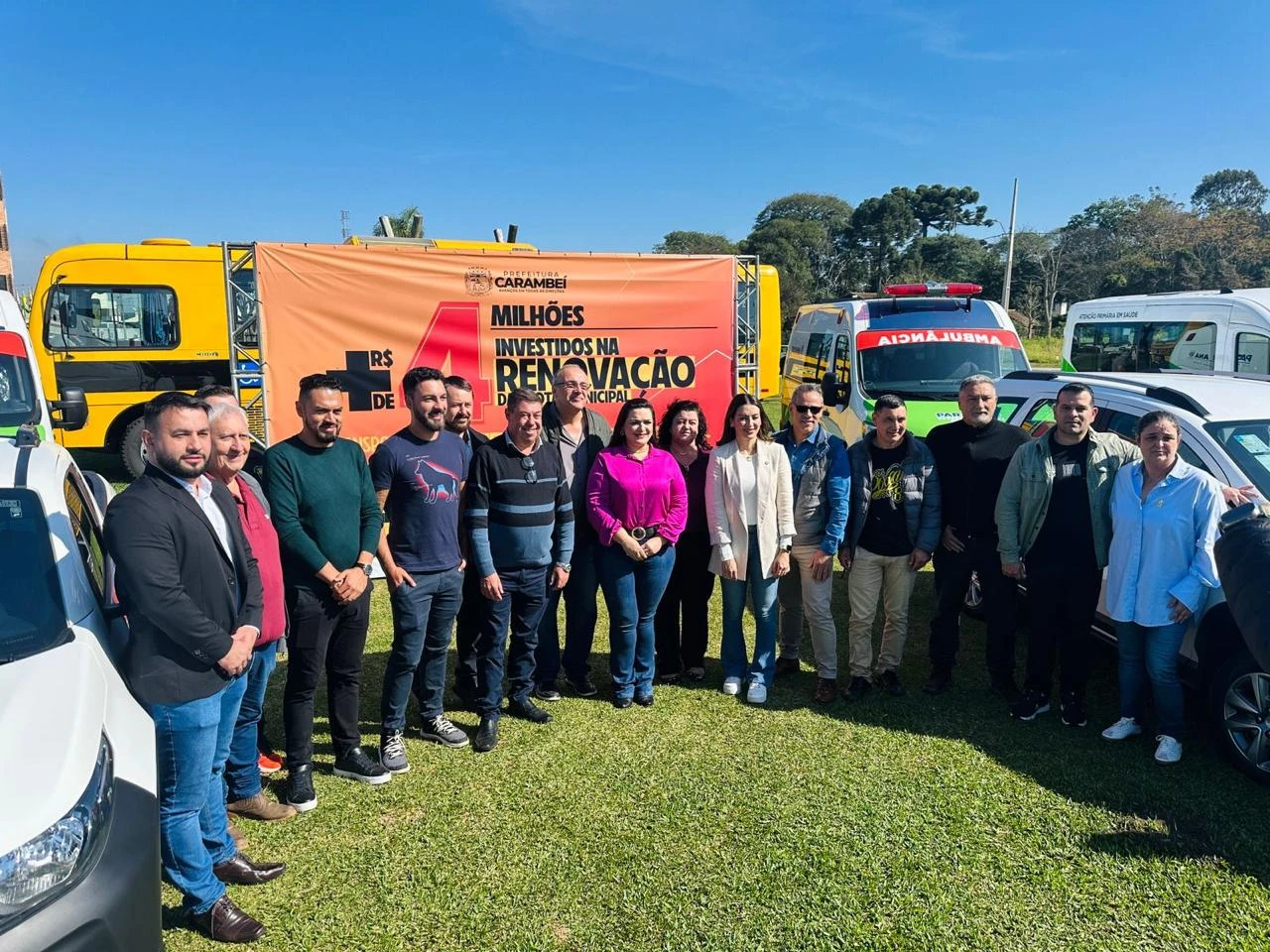 Na manhã desta sexta-feira (16), uma solenidade oficializou a entrega de 16 novos veículos à Prefeitura de Carambeí, incluindo vans, ambulâncias, ônibus, micro-ônibus e carros leves. Os investimentos superam a marca de R$ 4 milhões, provenientes de emendas parlamentares e recursos impositivos.