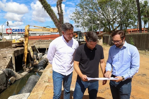 Eduardo Pimentel vistoria reforço dos condutos forçados e avanço da macrodrenagem na Bacia do Rio Pinheirinho