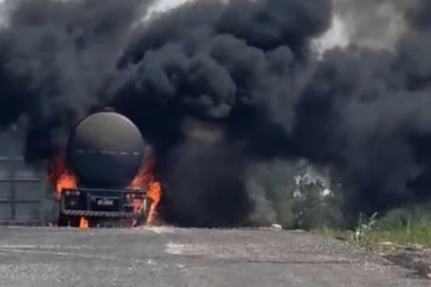 Caminhão carregado com óleo vegetal pega fogo na PR-151, entre Ponta Grossa e Palmeira