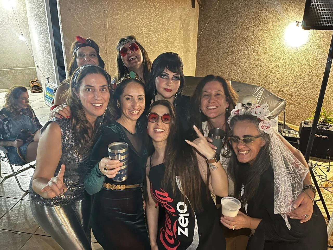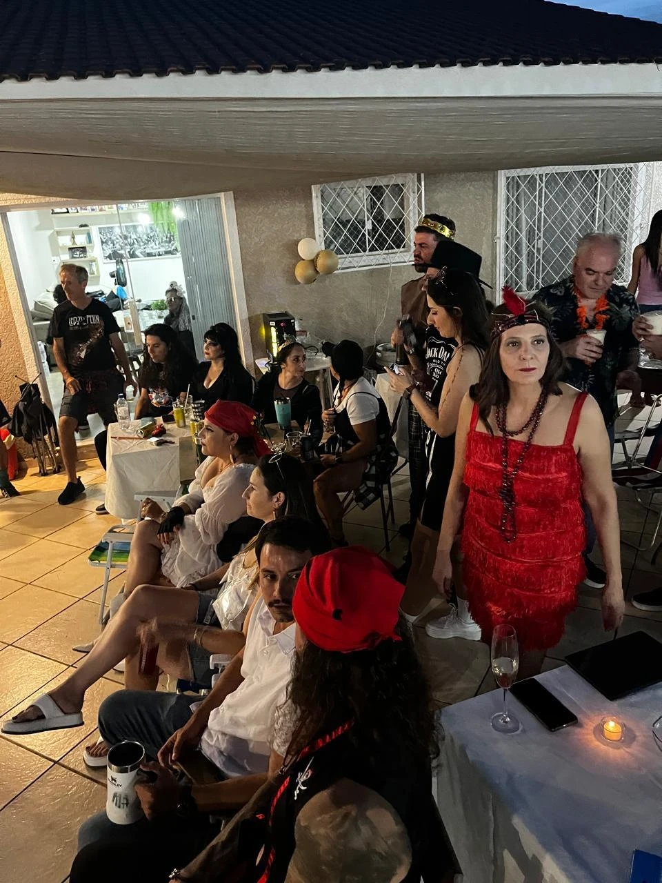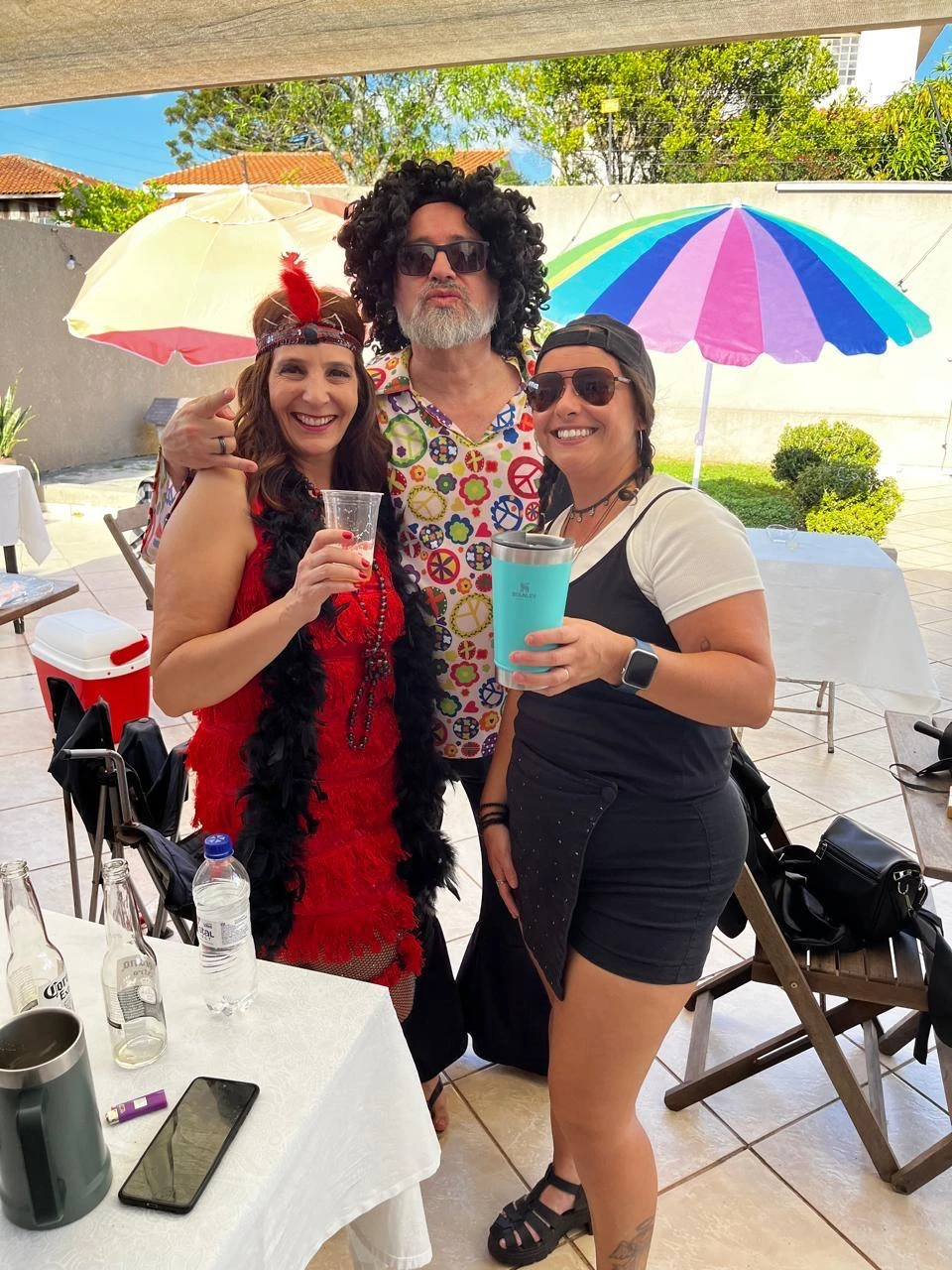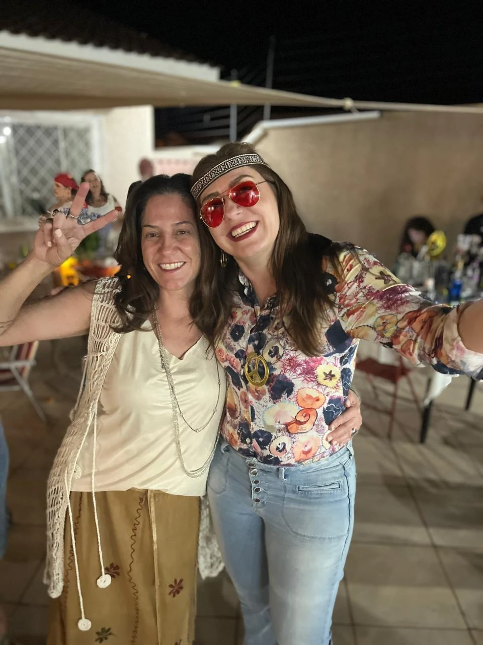 A proposta foi recebida com entusiasmo por todos os convidados, que se dedicaram com afinco à produção de figurinos criativos, ousados e cheios de personalidade. Cada personagem escolhido revelou não apenas o bom humor dos presentes, mas também o afeto que nutrem pela anfitriã que estava caracterizada de Janis Joplin. Foi um verdadeiro desfile de originalidade e carinho, com cada convidado se superando em sua escolha. A animação da festa foi um dos grandes destaques da noite. Com muito talento e energia contagiante, as bandas FNM (@bandafnm), Triolnbuia (@triolnbuia) e Theronies (@theronies) garantiram um repertório vibrante que não deixou ninguém parado. A presença marcante do marido de Diti, seu fiel escudeiro @emersonmarcosgomes, também se destacou, contribuindo com sua dedicação e parceria para que tudo saísse perfeito. Entre risos, abraços e surpresas, o que se viu foi uma celebração à vida, à amizade e à alegria de viver.