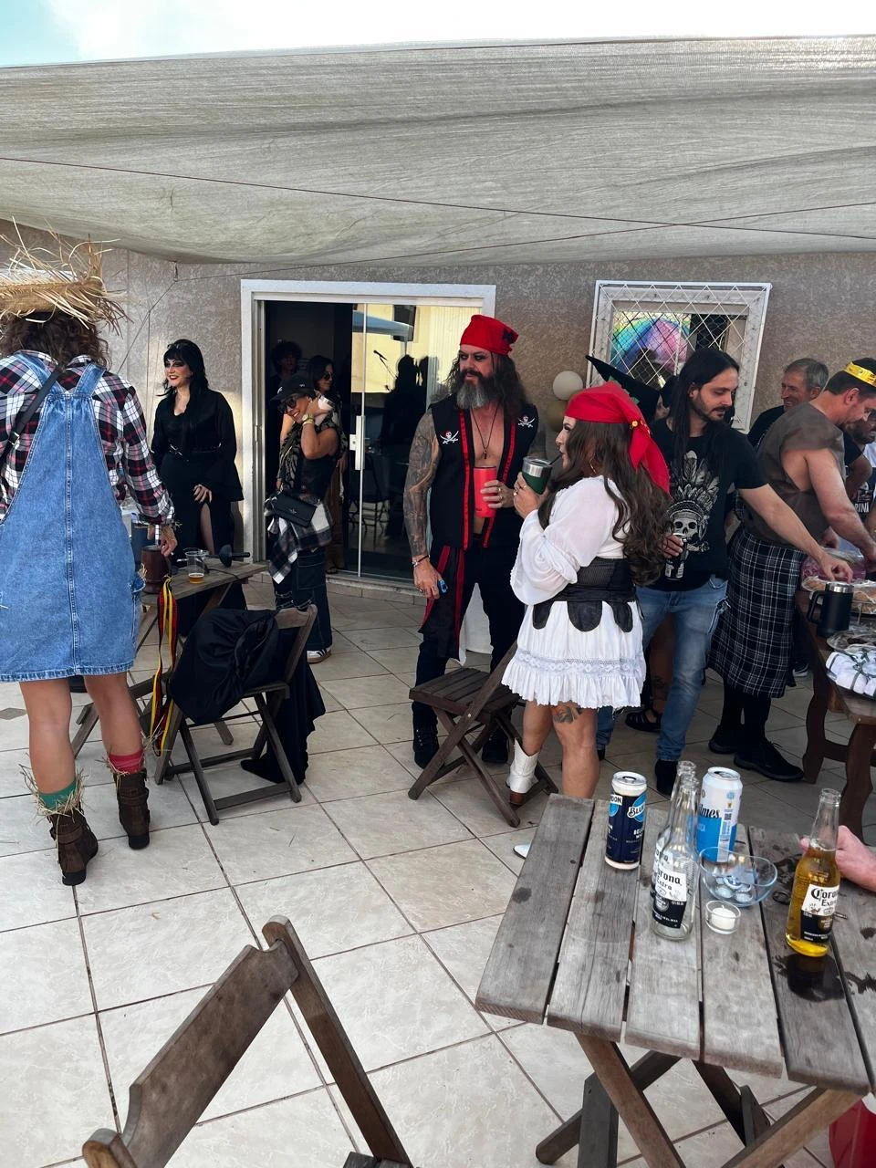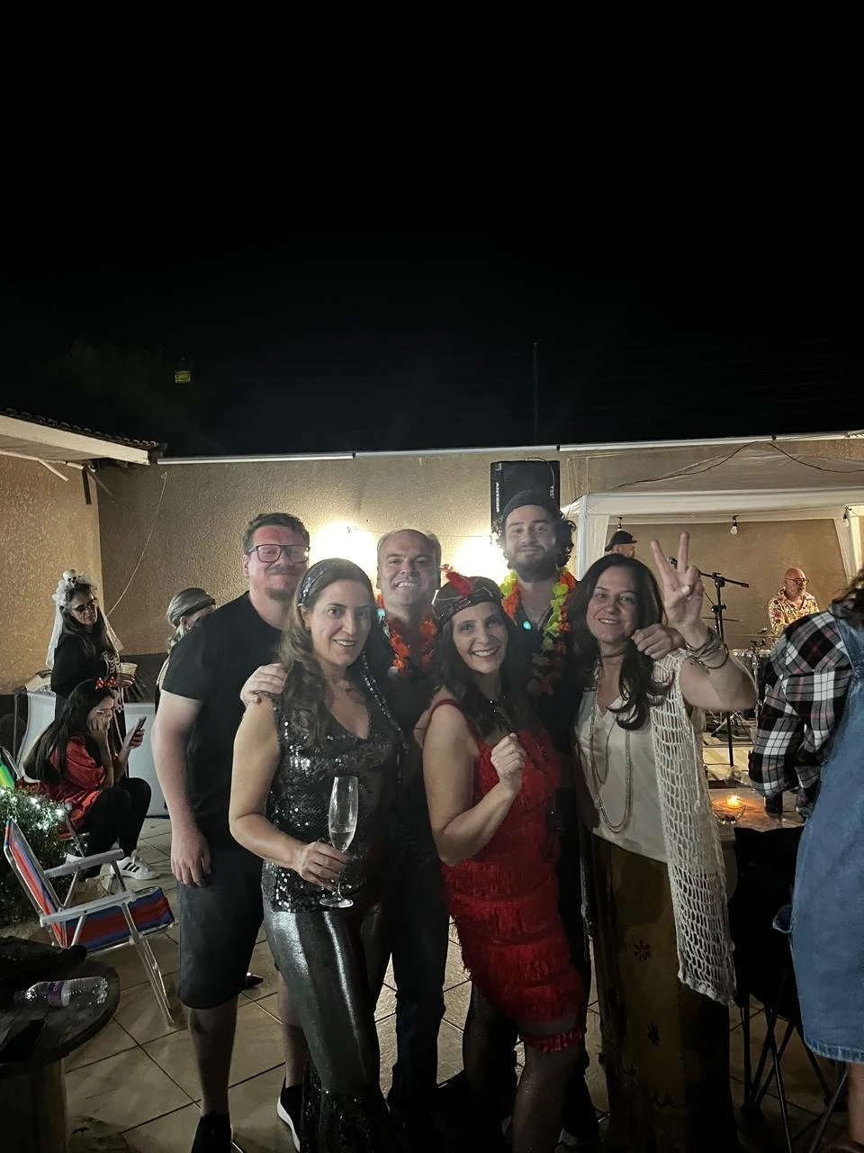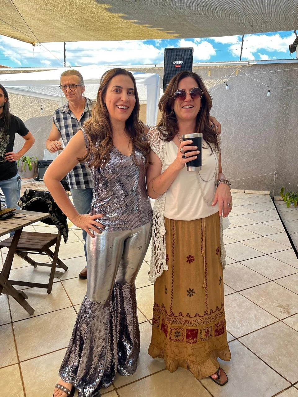 A proposta foi recebida com entusiasmo por todos os convidados, que se dedicaram com afinco à produção de figurinos criativos, ousados e cheios de personalidade. Cada personagem escolhido revelou não apenas o bom humor dos presentes, mas também o afeto que nutrem pela anfitriã que estava caracterizada de Janis Joplin. Foi um verdadeiro desfile de originalidade e carinho, com cada convidado se superando em sua escolha. A animação da festa foi um dos grandes destaques da noite. Com muito talento e energia contagiante, as bandas FNM (@bandafnm), Triolnbuia (@triolnbuia) e Theronies (@theronies) garantiram um repertório vibrante que não deixou ninguém parado. A presença marcante do marido de Diti, seu fiel escudeiro @emersonmarcosgomes, também se destacou, contribuindo com sua dedicação e parceria para que tudo saísse perfeito. Entre risos, abraços e surpresas, o que se viu foi uma celebração à vida, à amizade e à alegria de viver.