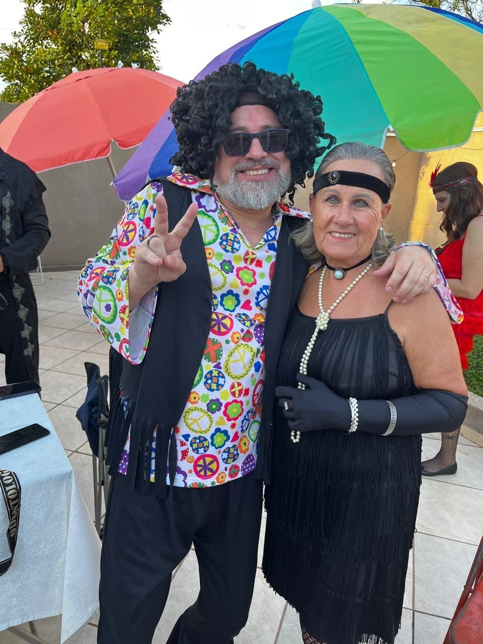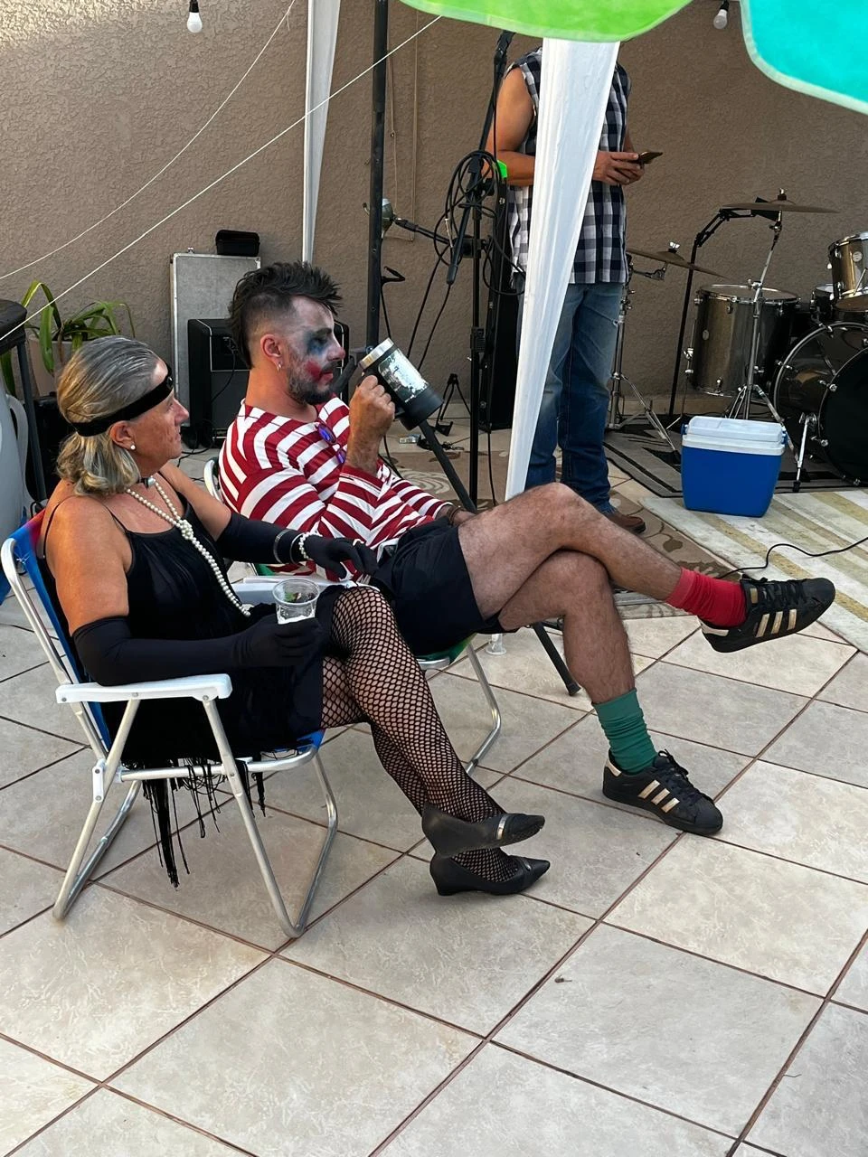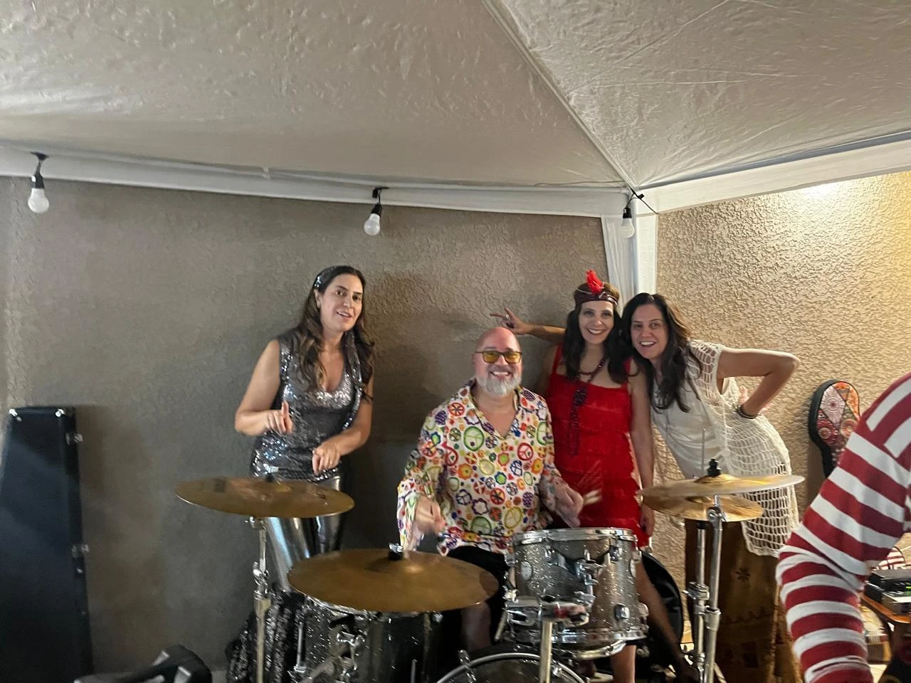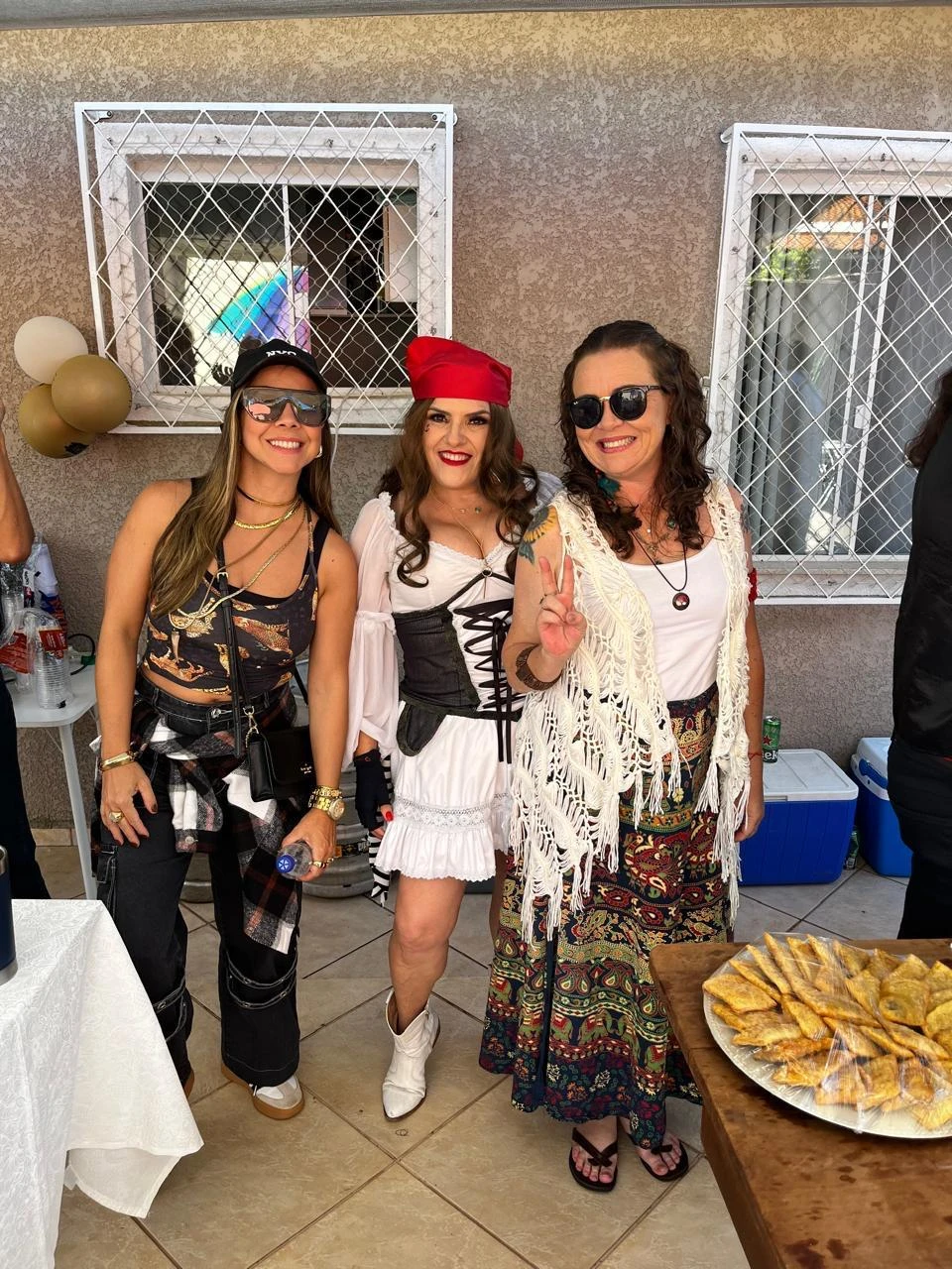 A proposta foi recebida com entusiasmo por todos os convidados, que se dedicaram com afinco à produção de figurinos criativos, ousados e cheios de personalidade. Cada personagem escolhido revelou não apenas o bom humor dos presentes, mas também o afeto que nutrem pela anfitriã que estava caracterizada de Janis Joplin. Foi um verdadeiro desfile de originalidade e carinho, com cada convidado se superando em sua escolha. A animação da festa foi um dos grandes destaques da noite. Com muito talento e energia contagiante, as bandas FNM (@bandafnm), Triolnbuia (@triolnbuia) e Theronies (@theronies) garantiram um repertório vibrante que não deixou ninguém parado. A presença marcante do marido de Diti, seu fiel escudeiro @emersonmarcosgomes, também se destacou, contribuindo com sua dedicação e parceria para que tudo saísse perfeito. Entre risos, abraços e surpresas, o que se viu foi uma celebração à vida, à amizade e à alegria de viver.