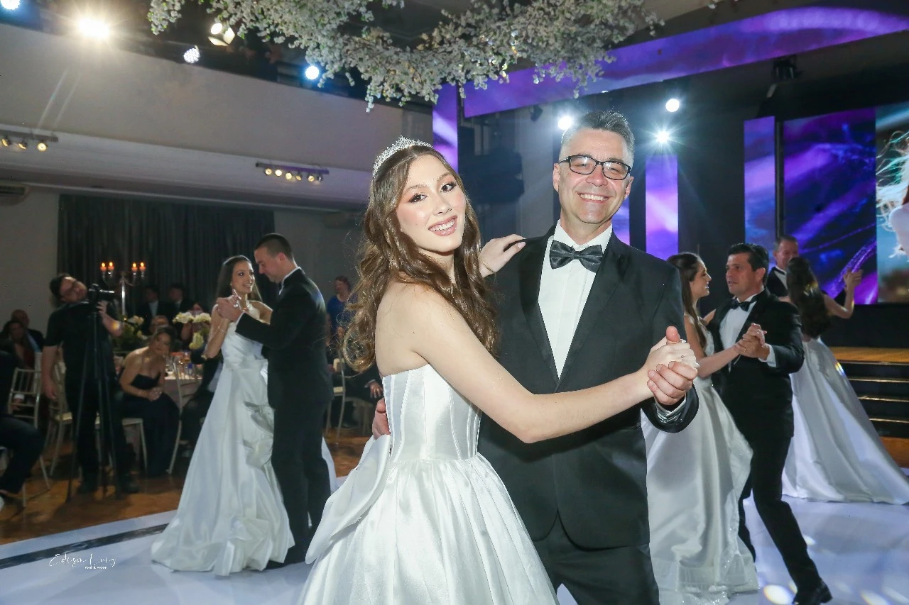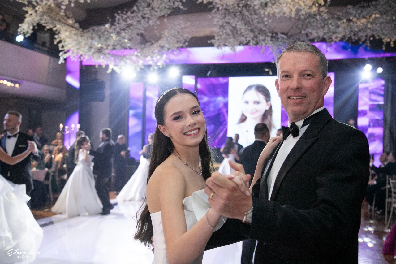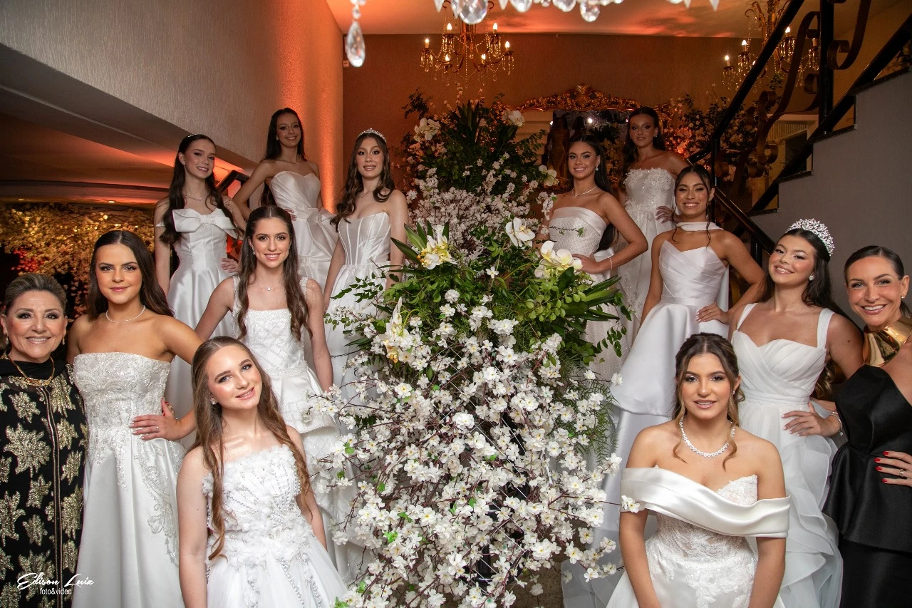 O salão, transformado em um verdadeiro espetáculo de luzes, revelou uma decoração deslumbrante, que arrancou suspiros e deu o tom de uma noite inesquecível. Tudo foi cuidadosamente preparado para receber as lindas jovens que, cheias de graça e emoção, viveram um dos momentos mais marcantes de suas vidas.