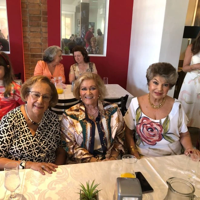 Na foto com as amigas Elba Lozza de Moraes e Stella Maris Gravina, sra. Laís Tuma durante comemoração de seus 89 anos. Três mulheres referência em nossa sociedade nos inspirando na elegância e gentileza.