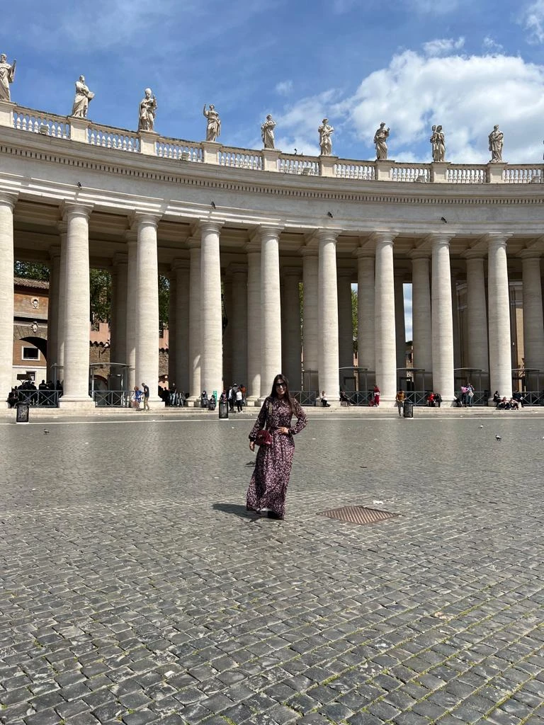 Em “ESTADO DE GRAÇA” Dayane Cristina Basso em Piazza San Pietro no Vaticano/Roma/Itália, na comemoração de seu aniversário em 2022 após Missa Pascal.