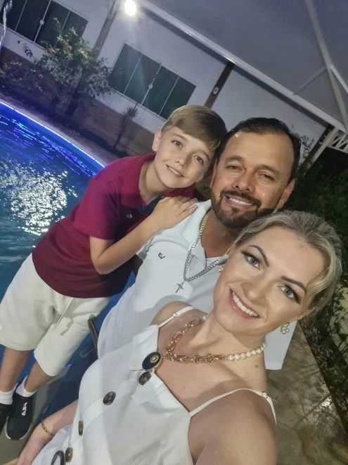 Filho Luís Guilherme Sleutjes Roberto, com mãe Aline Sleutjes para Luís Antônio Roberto.