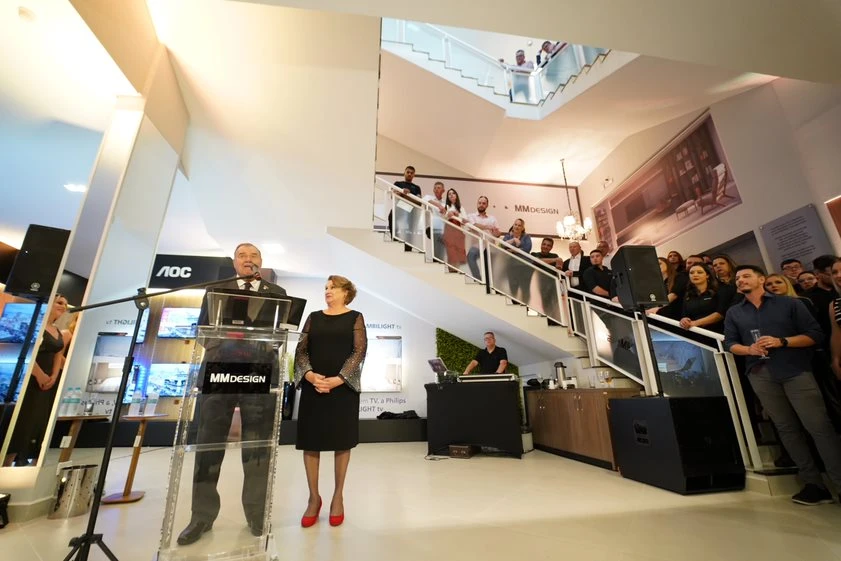 Com um coquetel para convidados, o Grupo MM (leia-se Família Pauliki), que comemora seus 45 anos de fundação, presenteou nossa cidade com uma bela repaginação de sua loja instalada na Avenida Vicente Machado, a Super MM assina agora como MM Design, com setores exclusivos na linha Garden, couro e móveis planejados. Requintadíssima, a loja oferece um espaço exclusivo e profissionais capacitados, onde o cliente receberá o direcionamento aos seus projetos. A cobertura completa do evento estará em nosso registro social da edição 298 da Revista D’Ponta.