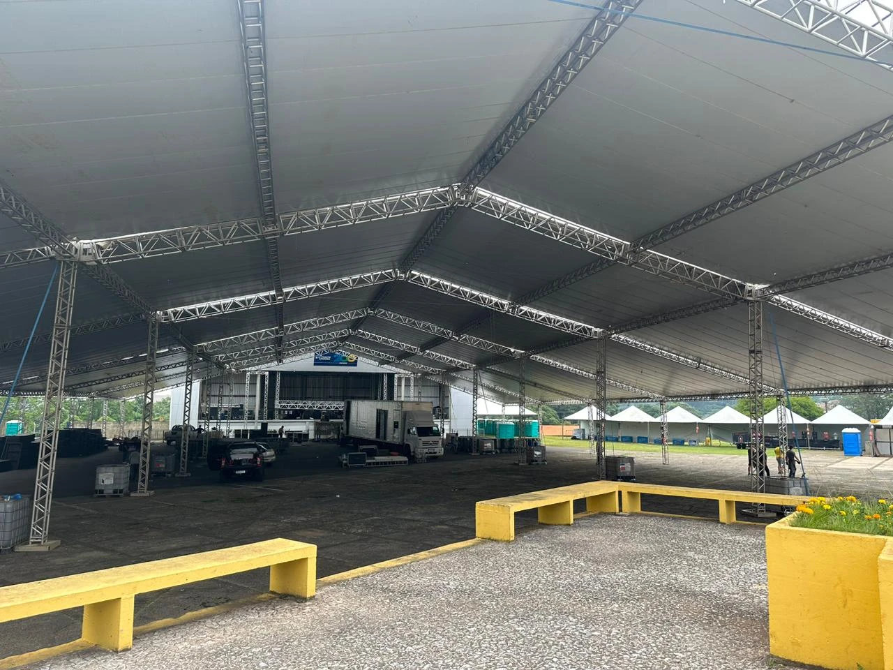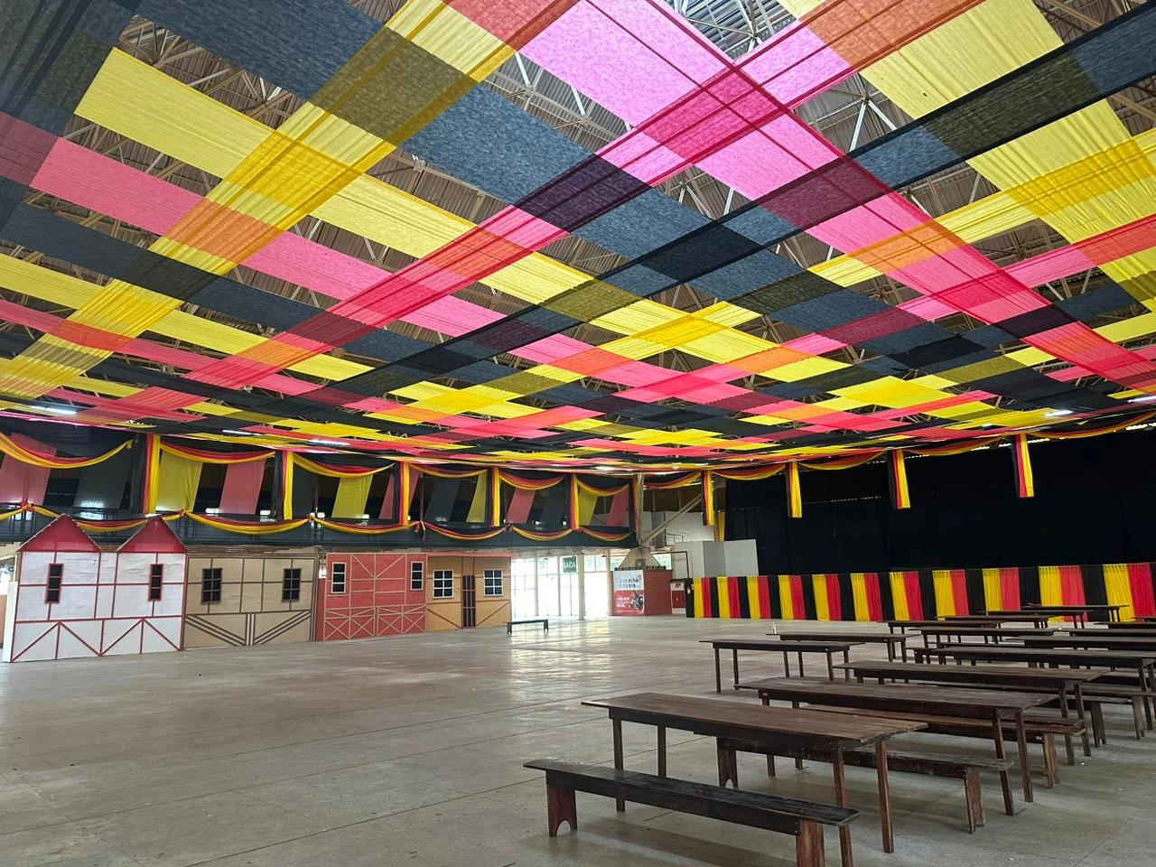 Fotos divulgadas pela produção da Münchenfest nesta quinta-feira (16) mostram como estão os preparativos do Centro de Eventos para a festa, que inicia nesta sexta-feira (17) com o tradicional desfile na Avenida Vicente Machado e show de Hugo e Guilherme no palco principal. A dupla tem hits estourados pelas rádios de todo o Brasil como “Mal feito”, “Elevador” e “Alguém me chama pra beber”.
