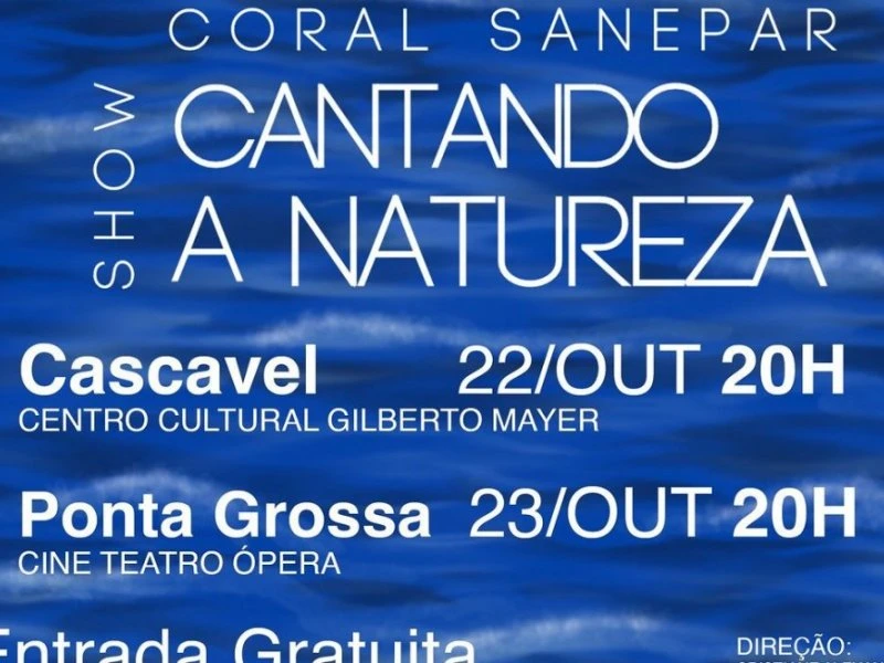 Coral Sanepar, maestrina Cristiane Alexandre, o show "Cantando a Natureza" traz à tona a essência do cancioneiro popular com um olhar voltado para o meio ambiente. Toda a programação é feita com recursos da Lei Federal de Incentivo à Cultura, a Lei Rouanet (8.313/1991).