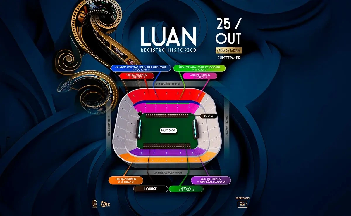 AQUI). Os setores da arena foram nomeados com base em hits marcantes de Luan