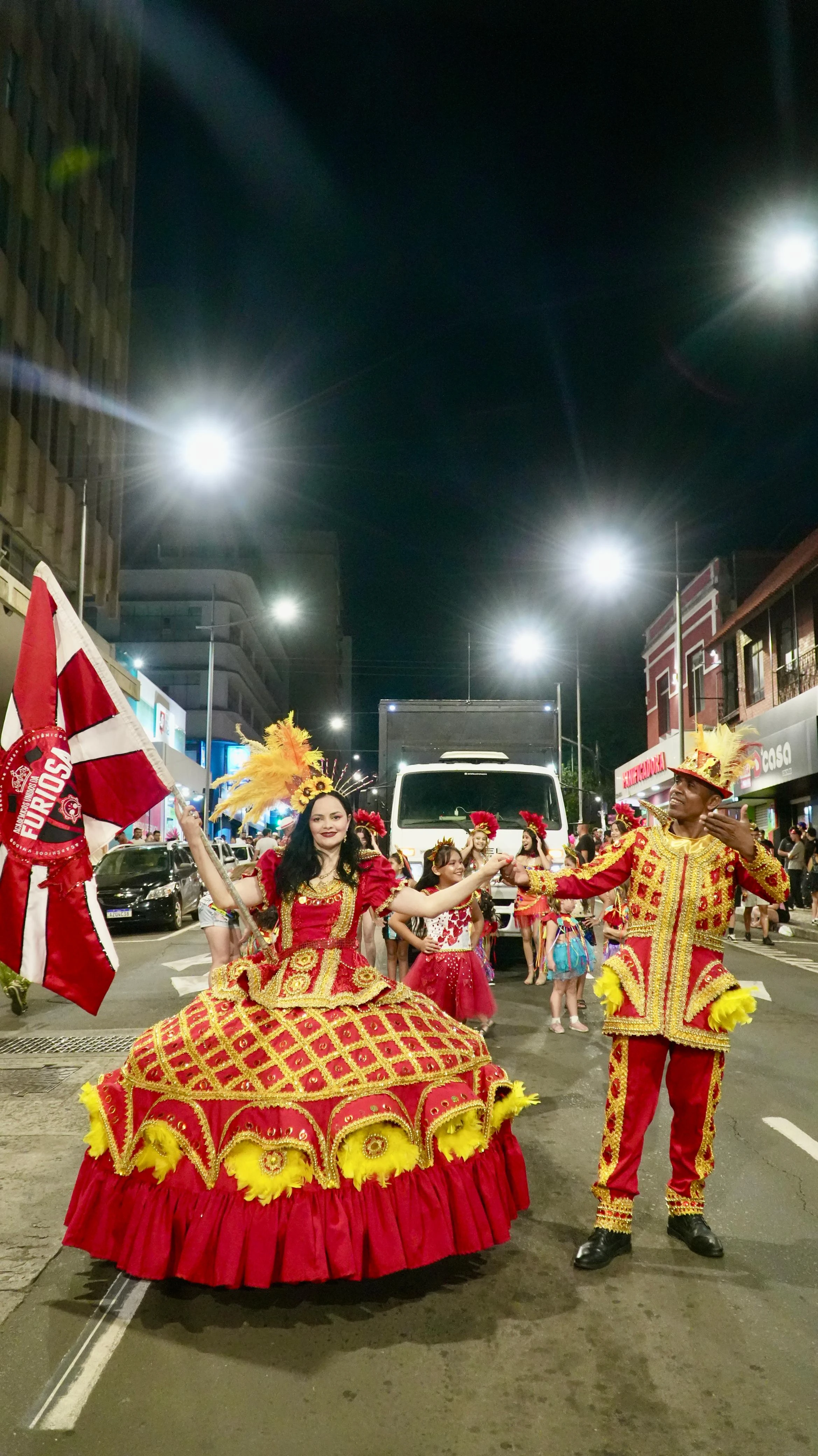 Com alguns atrasos, três escolas de samba de Ponta Grossa desfilaram pela Avenida Vicente Machado, na noite deste sábado (14), como parte da programação oficial do Carnaval 2026 no município: Unidos da Furiosa, Ases da Vila e Império do Samba - Cidade de Olarias.