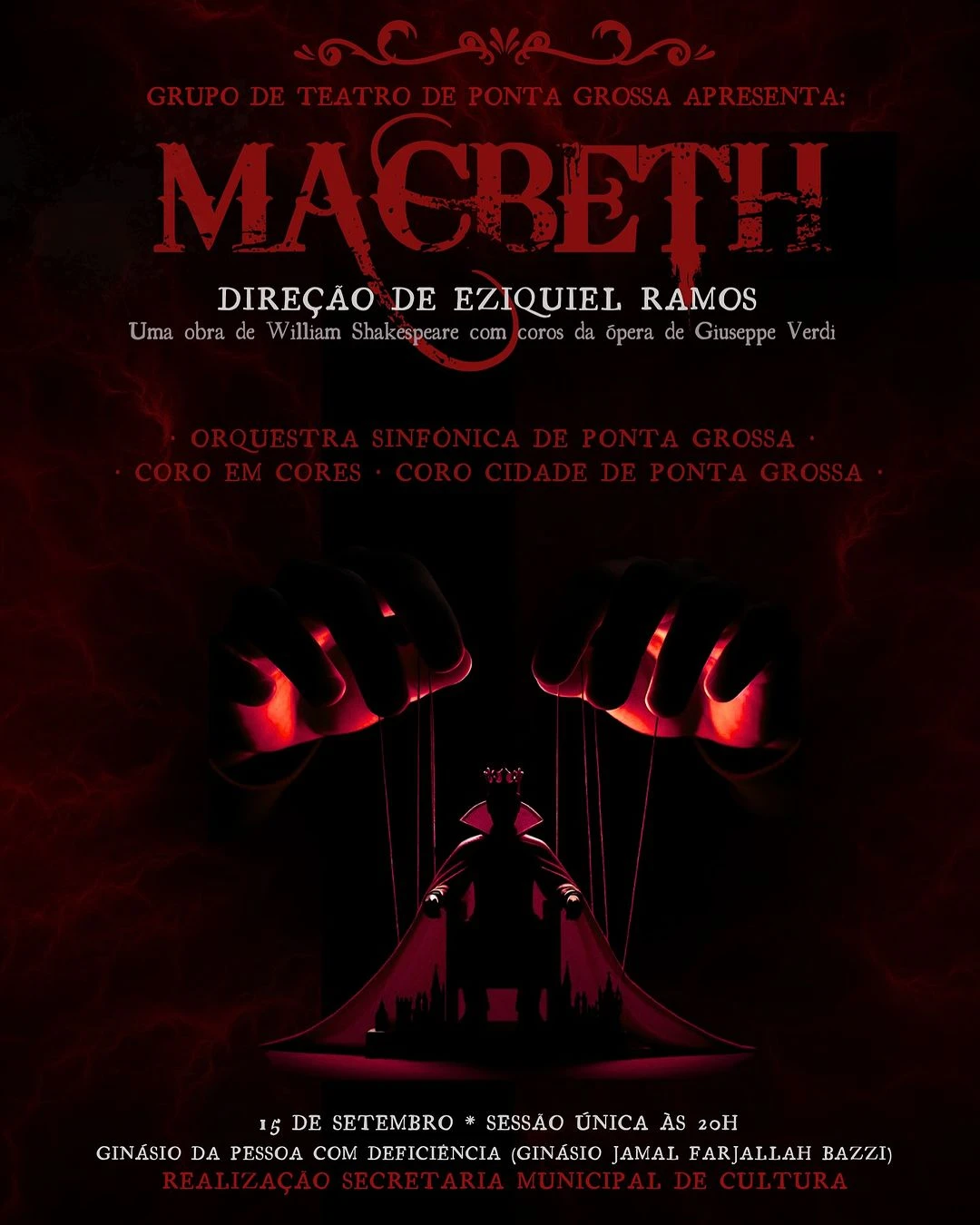 “Macbeth” é uma tragédia escrita por William Shakespeare, entre 1.603 e 1.606, que narra a história de um valente general escocês, Macbeth, que recebe uma profecia de um grupo de bruxas de que se tornará o rei da Escócia. Ambicioso e influenciado pela sua esposa, Lady Macbeth, ele decide assassinar o rei Duncan para tomar o trono. A partir desse ato, MacBeth mergulha em uma espiral de culpa, paranóia e violência, que o leva a cometer mais crimes para manter seu poder.