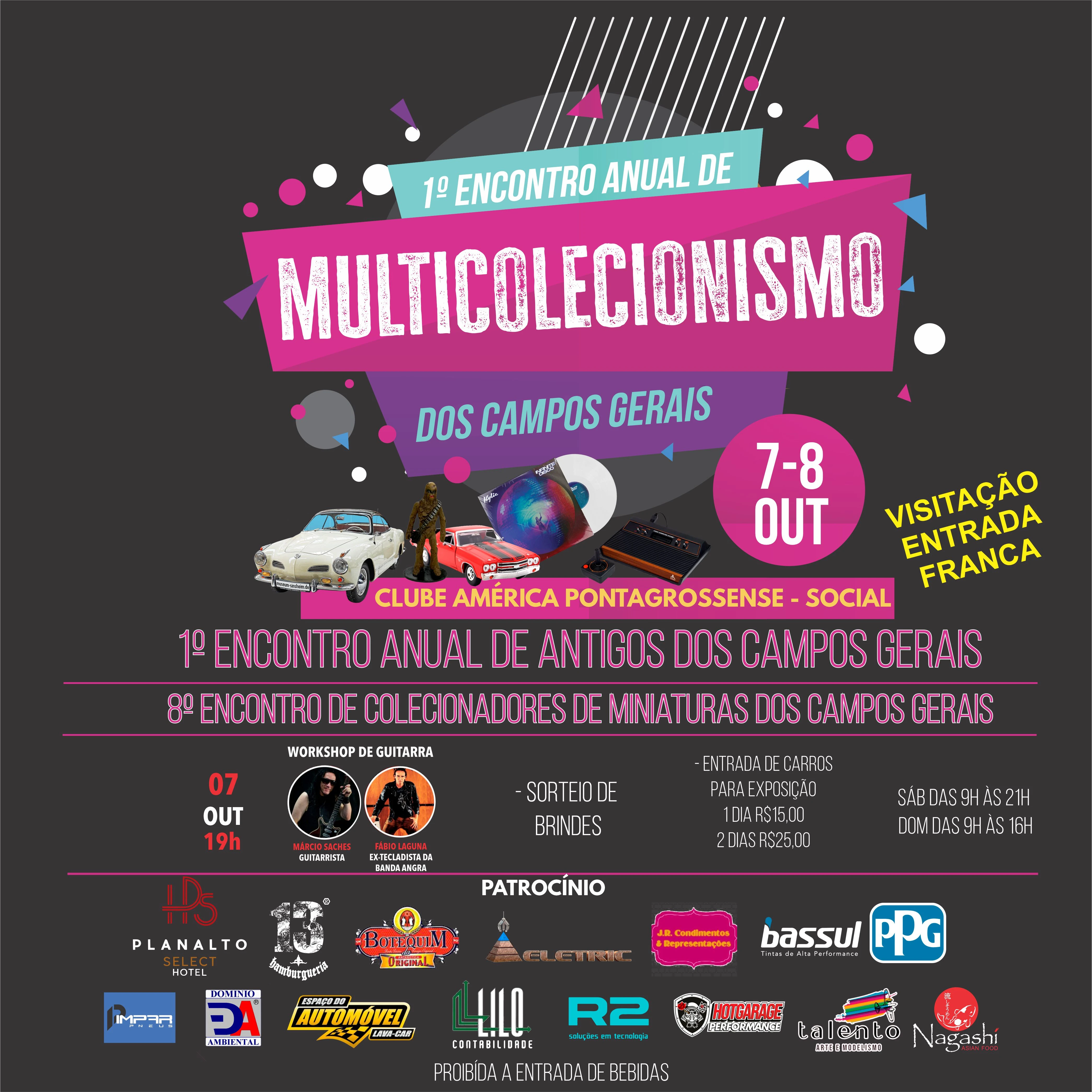 Neste fim de semana, Ponta Grossa recebe o 1° Encontro Anual de Multicolecionismo dos Campos Gerais, sendo o 8° Encontro de Colecionadores de Miniaturas dos Campos Gerais. O evento acontece no Clube América Pontagrossense - Social, no sábado (07) das 9h às 21 horas e no domingo (08) das 9h às 16 horas. A entrada para visitação é gratuita.