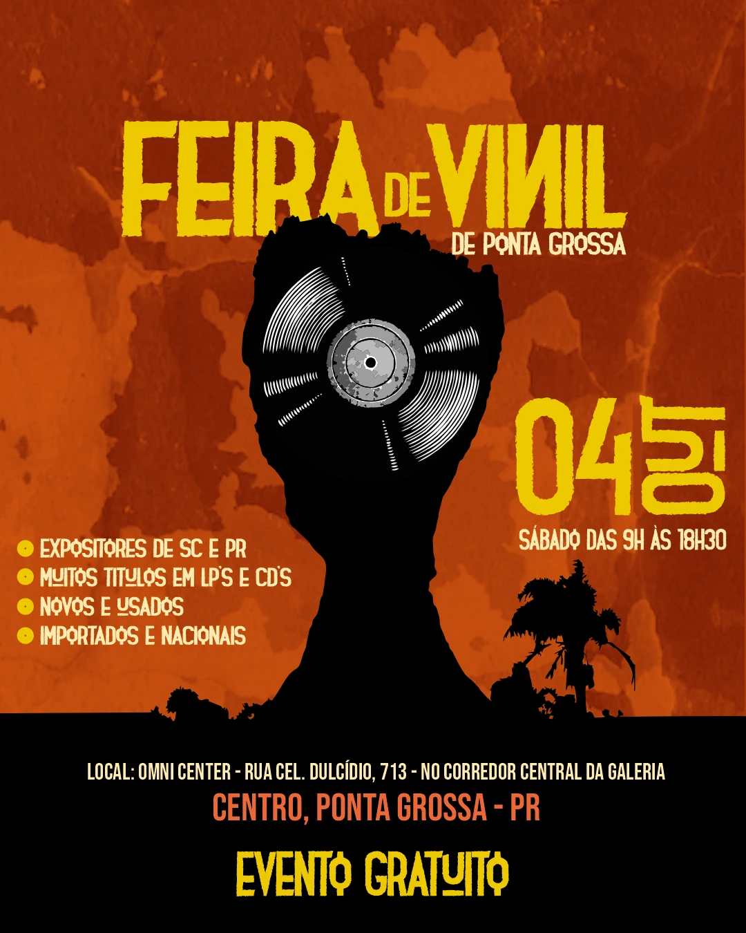 A Galeria Omni, localizada no Centro de Ponta Grossa, será palco de mais uma edição da tradicional Feira de Vinil, marcada para o próximo sábado, 4 de outubro, das 9h às 18h30. O evento é gratuito e promete atrair colecionadores, curiosos e amantes da música em geral.