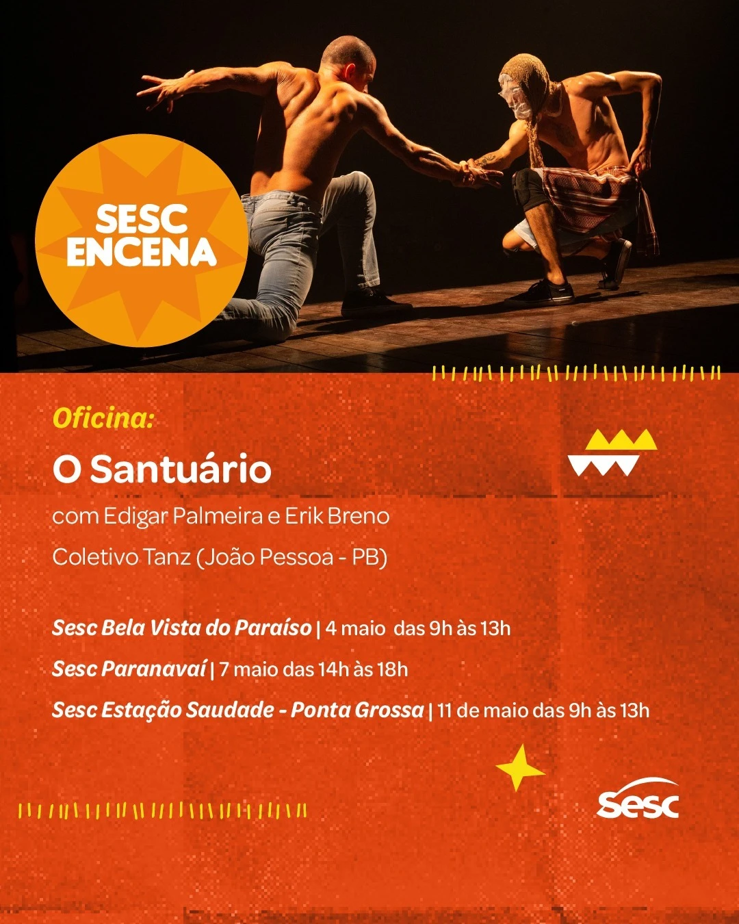 Oficina "O Santuário" Com Edigar Palmeira e Erik Breno (Coletivo Tanz – João Pessoa/PB) Data: 11 de maio, das 9h às 13h