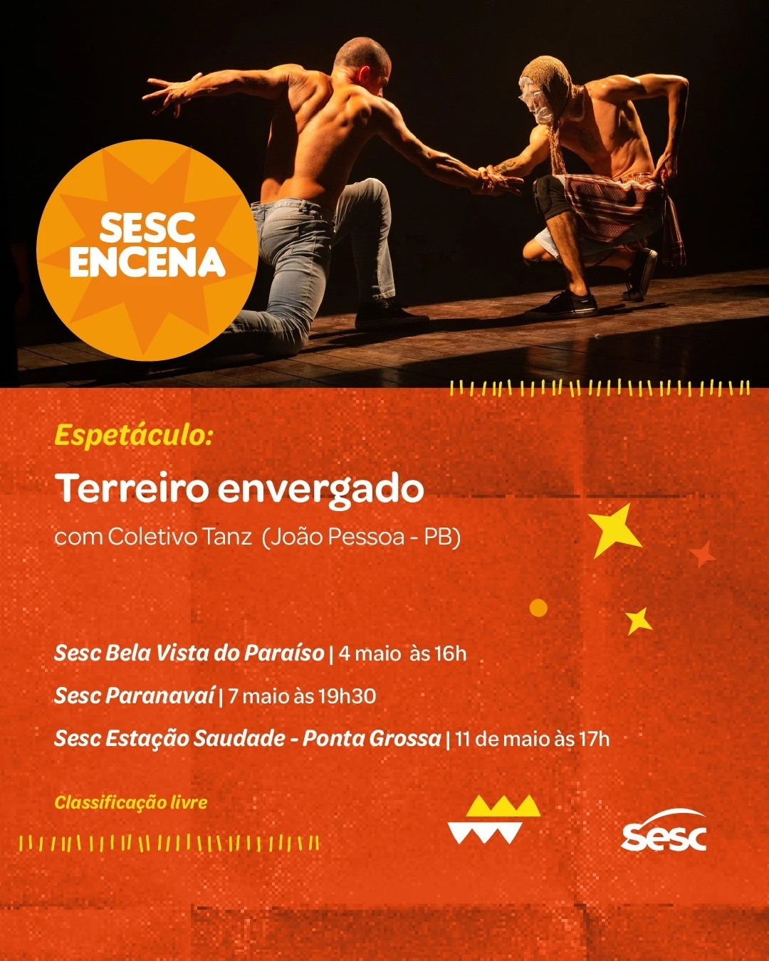 Espetáculo "Terreiro Envergado" Com Coletivo Tanz (João Pessoa/PB) Data: 11 de maio, às 17h