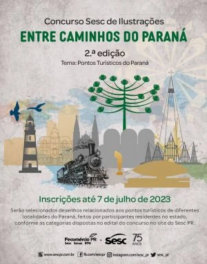 Com o objetivo de fomentar o interesse pela história e pela cultura paranaenses, o Sesc PR recebe até o dia 7 de julho inscrições para a segunda edição do Concurso Sesc de Ilustrações Entre Caminhos do Paraná, que tem como tema os pontos turísticos do estado.