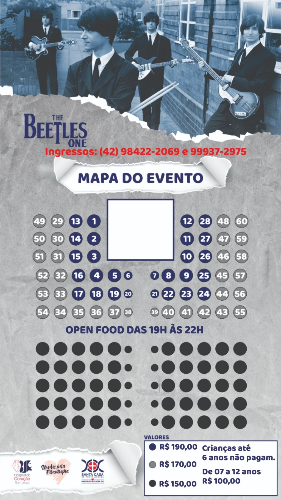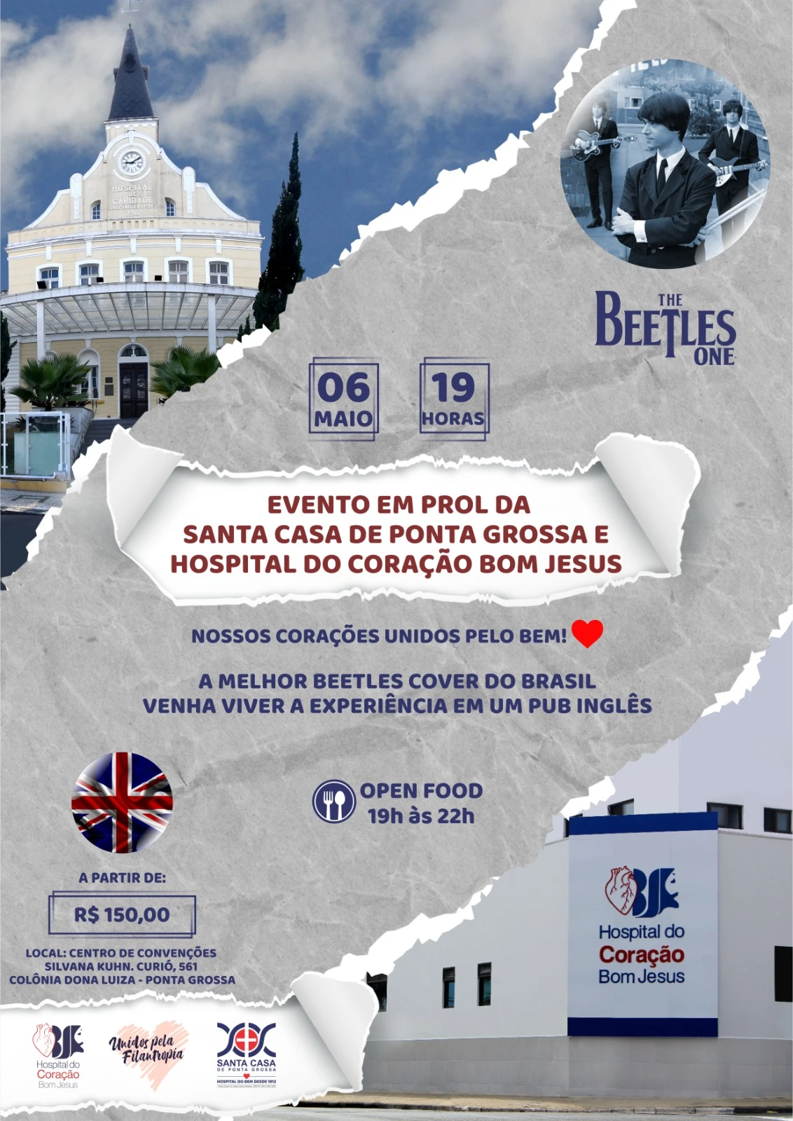 Como atração principal, a banda cover Beetles One fará espetáculo com os maiores sucessos da banda inglesa Beatles. Além da Beetles One, também haverá a apresentação da banda Hoochie Coochiers, tocando os clássicos dos anos 60. Para isso, o centro de convenções se transformará em um pub inglês, com comidas e bebidas típicas, além do ambiente carinhosamente pensado para o público. O evento será um marco na história das instituições filantrópicas da região, pois é a primeira vez que dois grandes hospitais unem suas forças para o bem da comunidade.