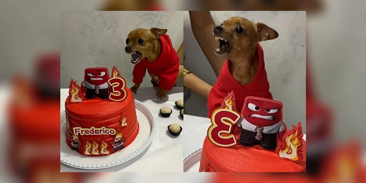 A festa foi com o tema 'Raiva', personagem do filme 'Divertidamente'. No vídeo compartilhado, Frederico começa a latir e rosnar para os convidados.