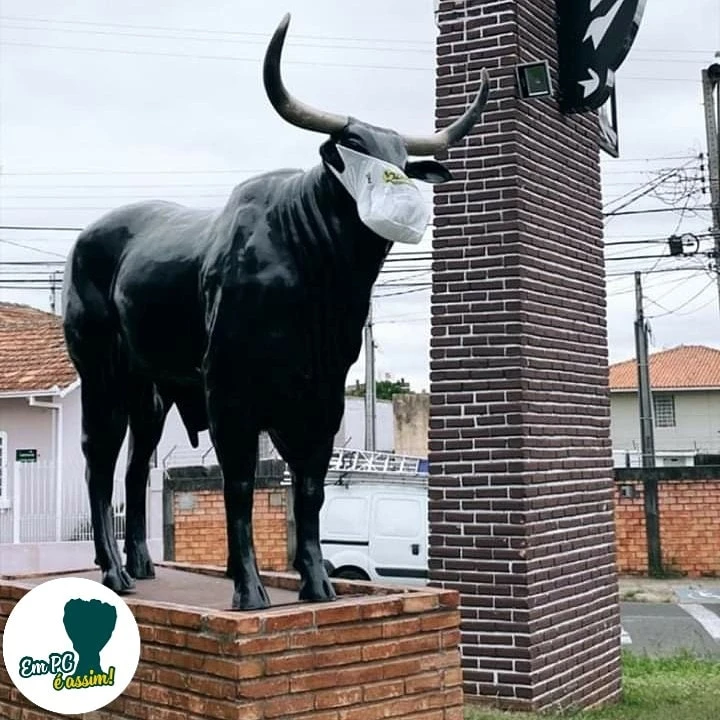 O uso de máscara em locais públicos é obrigatório em todo o Paraná e a maioria da população vem seguindo a recomendação. Em Ponta Grossa, até mesmo uma estátua de boi decidiu se proteger contra a Covid-19.