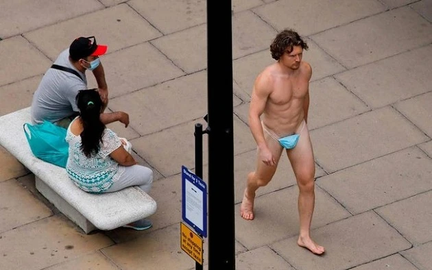 Nesta sexta-feira (24), um homem foi flagrado caminhando pela Oxford Street, centro comercial de Londres usando uma máscara. Até aí tudo bem. No entanto, o homem andava nu e usava o acessório para cobrir o pênis, e não a boca e o nariz. O uso do acessório é obrigatório devido ao novo coronavírus .