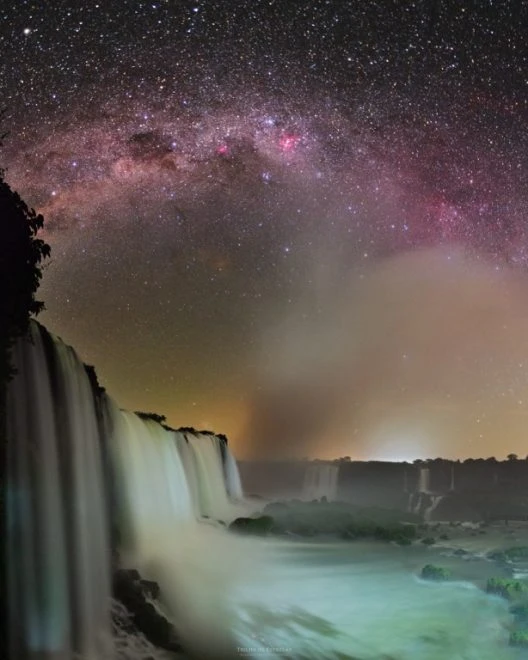 Você já deve ter olhado para o céu da sua cidade para admirar os corpos celestes e já deve ter apreciado também, em algum momento da vida, as Cataratas do Iguaçu, presencialmente ou em registros visuais nas mais diferentes plataformas de mídia, porém poucas pessoas no mundo conseguiram ver e registrar as galáxias, as estrelas e a poeira cósmica que podem ser admiradas, numa composição visual singular no planeta, na Maravilha Mundial da Natureza localizada no Parque Nacional do Iguaçu, na fronteira do Brasil com a Argentina.