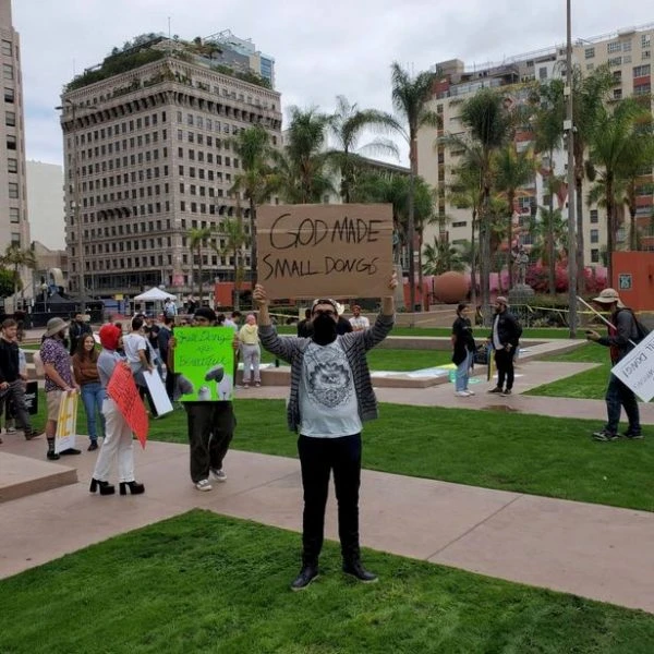 Centenas de pessoas participaram da "Marcha do pênis pequeno” (“Small Dong March”, em inglês) no último sábado (23). O evento foi realizado na Pershing Square, em Los Angeles, com o objetivo de acabar com o estigma negativo em torno de pênis pequenos. A marcha contou com a presença de homens e mulheres que levaram cartazes coloridos com mensagens de apoio.