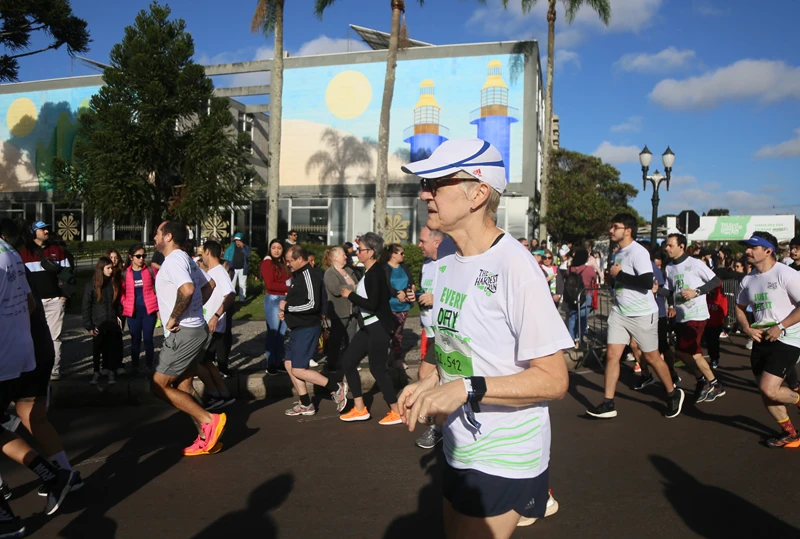 O prefeito Eduardo Pimentel foi um dos 16 mil participantes inscritos para a The Hardest Run 2025, corrida realizada neste domingo (19/10), com largada e chegada na Praça Nossa Senhora de Salete, no Centro Cívico. A manhã fria, mas de sol, não intimidou os corredores de todas as idades.