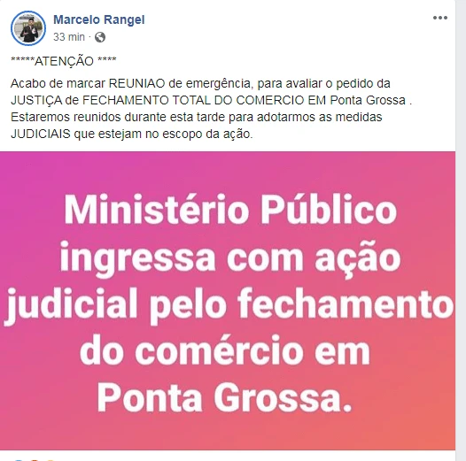 A reunião foi motivada após um pedido da 11ª promotoria do Ministério Público de Ponta Grossa para que o comércio não essencial fosse fechado no município. (leia mais clicando aqui)