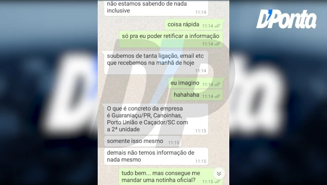 A reportagem do D'Ponta News entrou em contato com o grupo, que em um primeiro momento negou a compra. "Não estamos sabendo de nada inclusive", disse a comunicação do grupo. "O que é concreto da empresa é Guaraniaçu/PR, Canoinhas, Porto União e Caçador/SC com a 2ª unidade", complementou. Ainda foi informado que a própria diretoria do grupo havia sido pega de surpresa com a notícia.