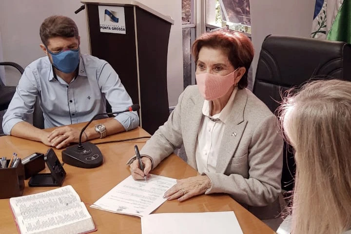 A Prefeitura de Ponta Grossa assinou, na última sexta-feira (09), um termo de parceria com a empresa Jhonn Barber para oferecer cursos profissionalizantes para alunos portadores de necessidades especiais através do “Projeto Anjos da Beleza”. A cerimônia de assinatura foi realizada no Gabinete da Prefeita e contou com a presença da prefeita Elizabeth Schmidt; do vice-prefeito Capitão Saulo; da secretária de Políticas Públicas Sociais (SMPPS) e presidente da FASPG, Simone Kaminski; além do secretário de Indústria Comércio e Qualificação Profissional, José Loureiro; da diretora de Programas e Projetos da SMPPS e coordenadora do Programa Selo Social, Amanda Costa; do empresário João Diniz e do presidente da Apae, Laerte Bittencourt Filho.