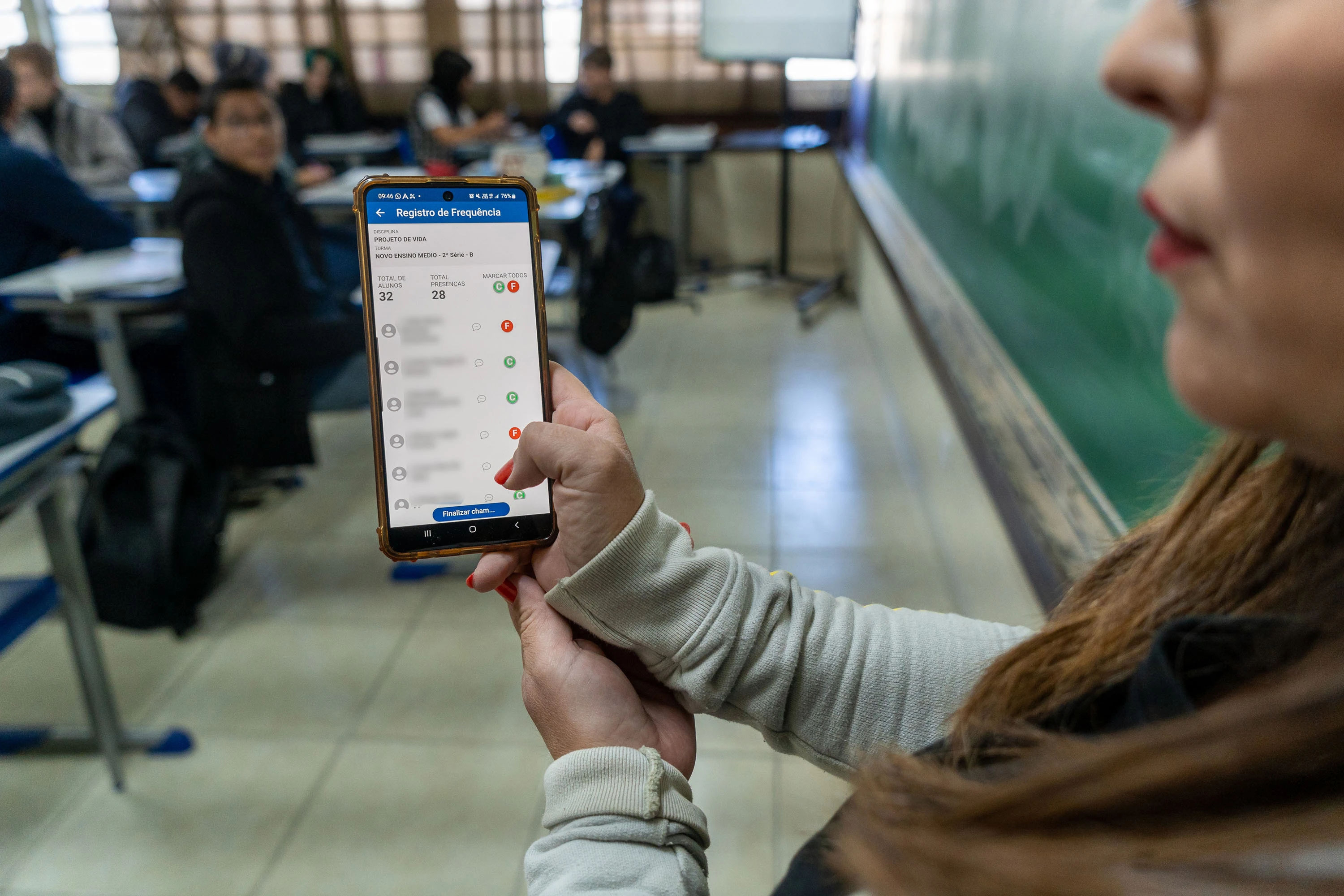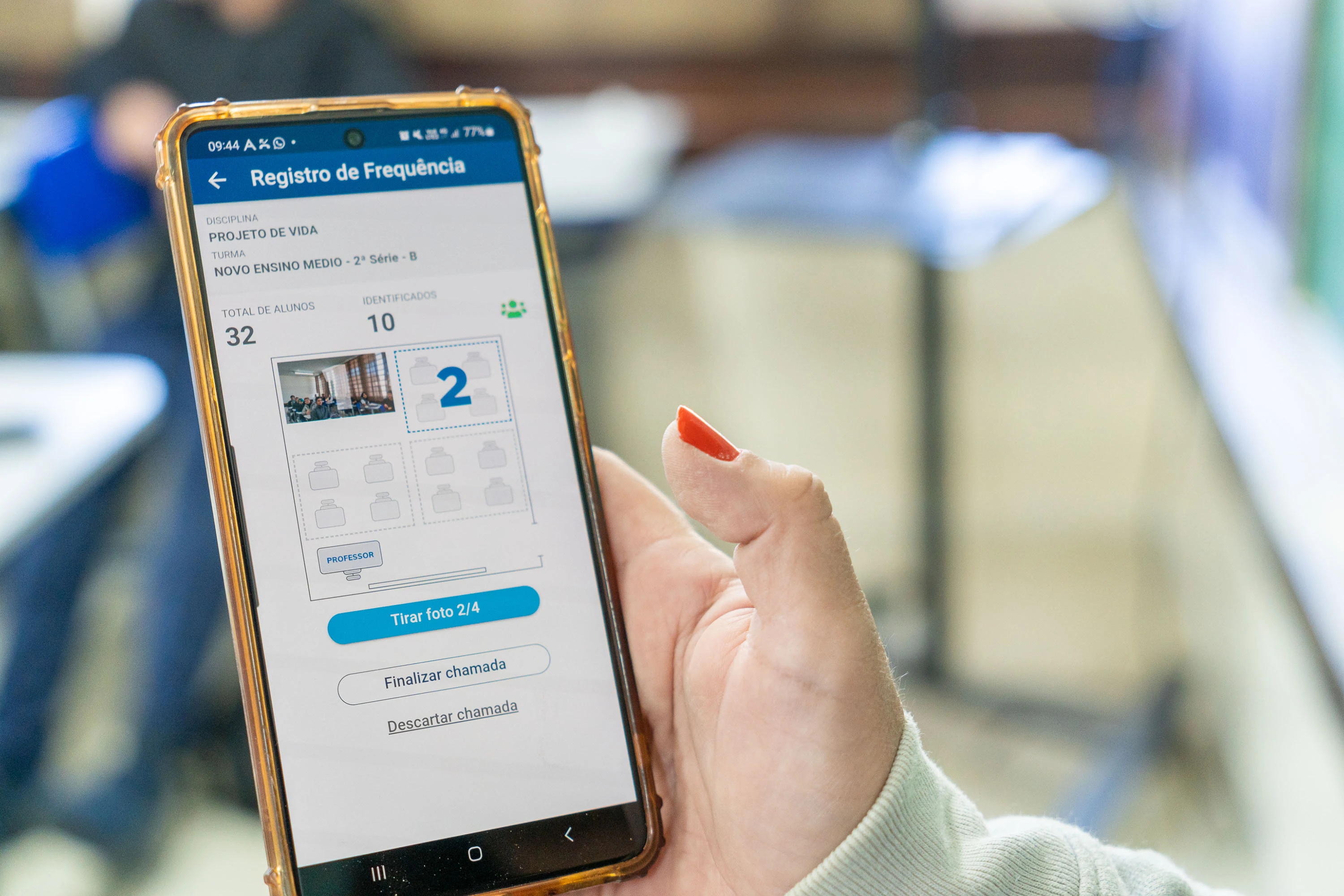 Novidade implementada neste ano na rede estadual de ensino, a chamada por reconhecimento facial chegou a 1.667 colégios em maio. A nova solução possibilita que os professores façam a chamada usando o celular, que reconhece os estudantes por biometria facial, agilizando um processo até então muito manual: a famosa lista de chamada no começo das aulas. Essas imagens não ficam armazenadas no dispositivo ou com os docentes, garantindo direito à privacidade das crianças.
