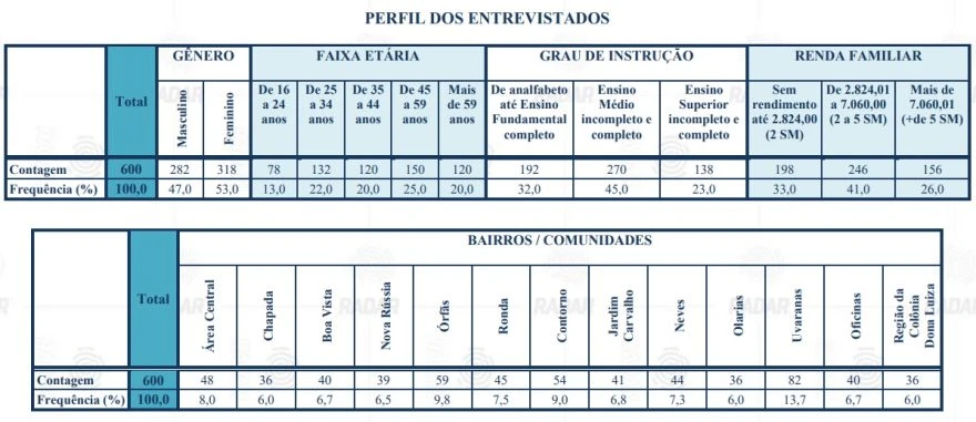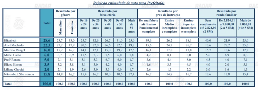 Já a rejeição por gênero, faixa etária, grau de instrução e renda familiar ficou da seguinte maneira: