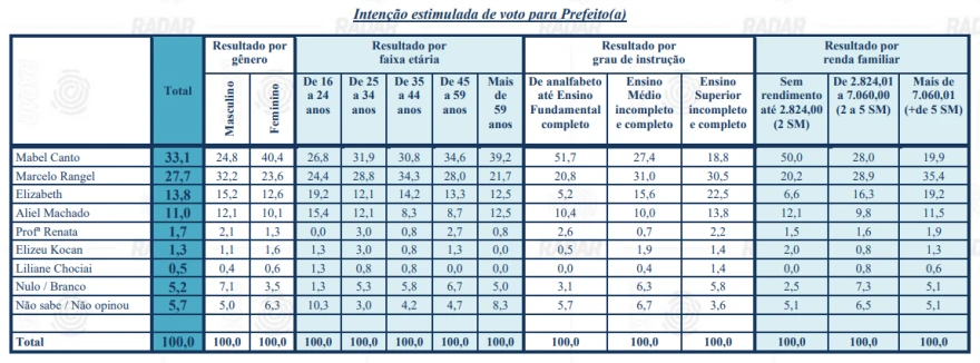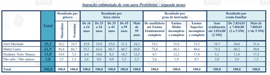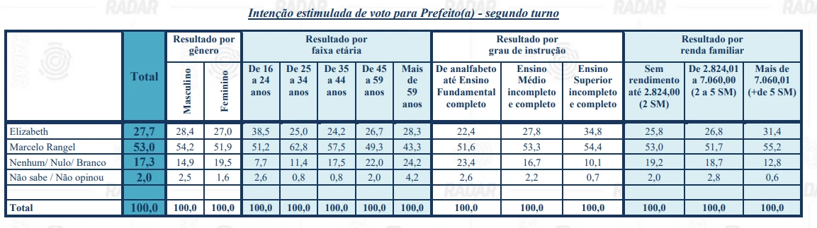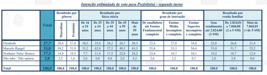 Na pesquisa estimulada, os resultados especificados foram os seguintes: