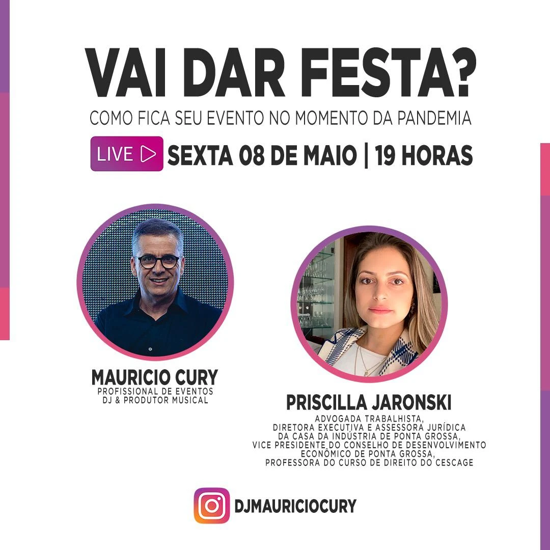 O DJ ponta-grossense Mauricio Cury, alinhado a outros 'DJ's' da cidade como, Ariel Dias, Ariel Junior, Thor e Elvis 'Mankada', participaram de uma ação de ajuda aos profissionais que trabalham com eventos em Ponta Grossa. Sofrendo com a crise devido ao coronavírus, os profissionais da área de eventos tem contado com a ajuda solidária de diversos profissionais do ramo da música ponta-grossense.