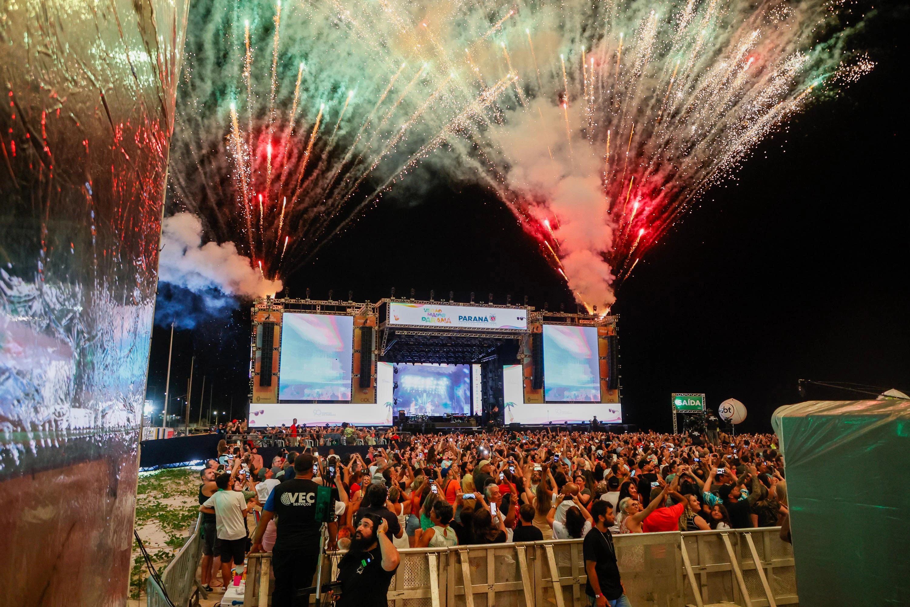 Ele também comemorou a volta ao Paraná e elogiou a estrutura da programação do Verão Maior. "O Paraná é, sem dúvida, o estado onde mais tocamos. Estamos felizes, começando o ano com essa estrutura maravilhosa. O que vocês montaram aqui é realmente 'fora da casinha'", brincou.