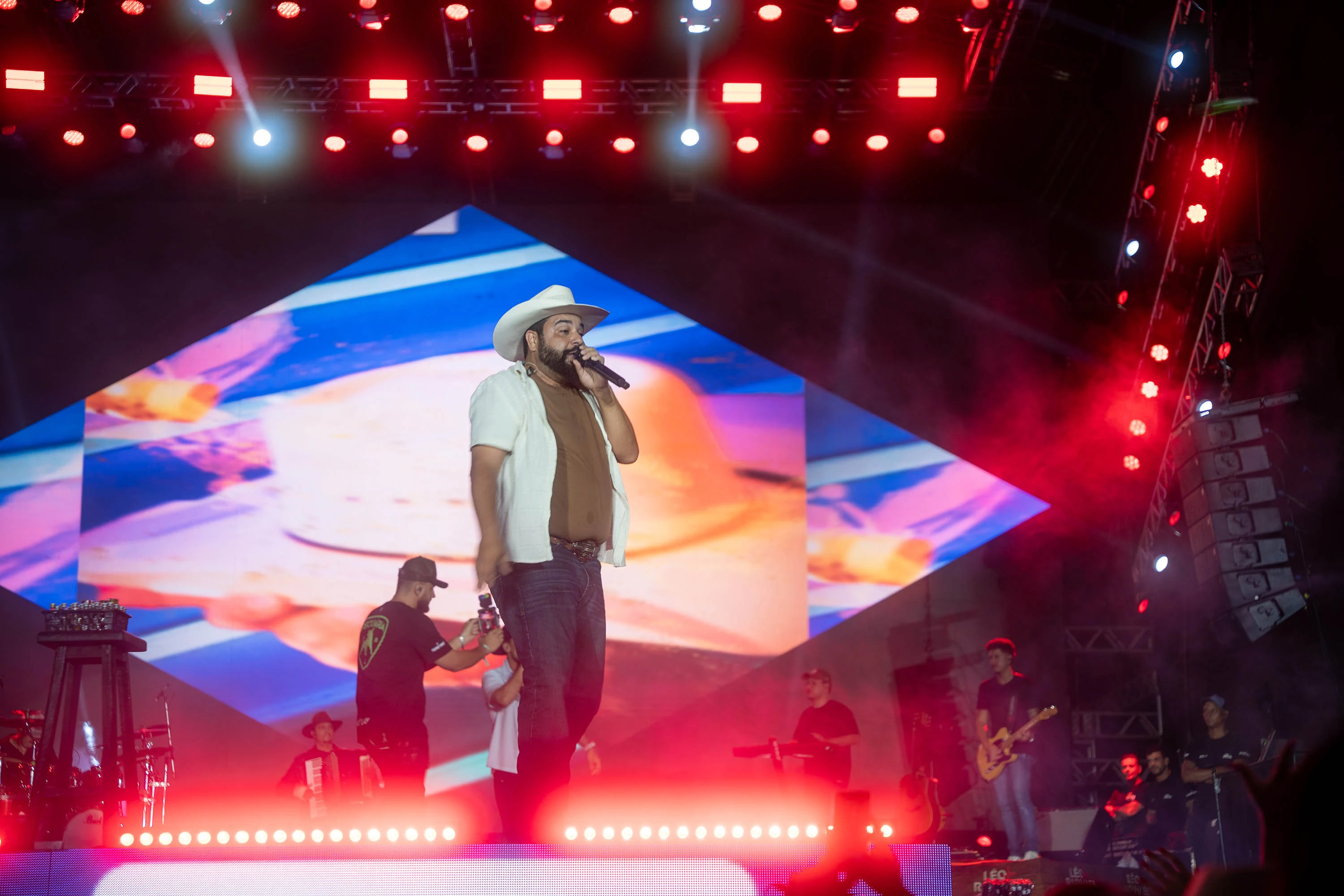 Naturais do Norte do Estado – Léo é de Londrina e Raphael da vizinha Cambé –, os paranaenses estouraram no Brasil com a música “Os menino da pecuária”, de 2021, que tem mais de 165 milhões de visualizações só no Youtube. Mas foi outro hit que abriu a noite em Pontal, “Agro é Top”, que ultrapassa 21 milhões de plays na plataforma de vídeos.