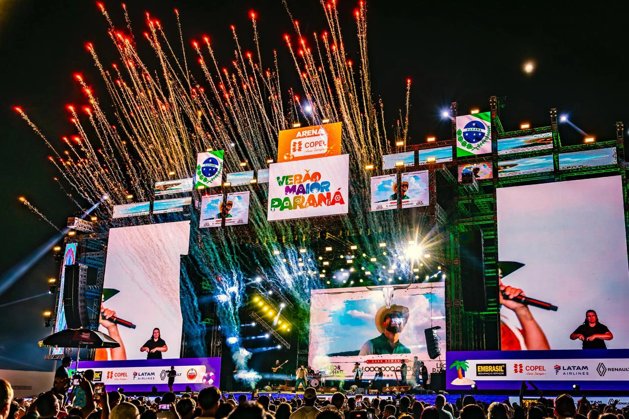 “Nós somos pé vermelho, do Norte do Paraná, e sempre frequentou as praias aqui do Litoral, desde molequinhos sempre vinha passar o verão aqui. A gente tem muito orgulho de ser do Paraná”, contou Léo. “E agora tocar aqui no Verão Maior Paraná, o maior verão do Brasil, que só tem show lotado e uma estrutura incrível, foi a realização de um sonho. Muito obrigado ao Governo do Paraná e a toda a galera responsável”.