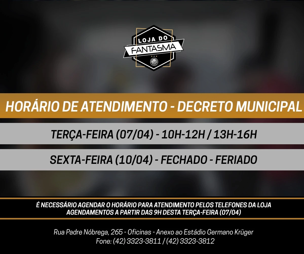 A Loja do Fantasma volta a atender o público nesta semana. Seguindo determinação da Prefeitura Municipal de Ponta Grossa, os atendimentos serão realizados nas terças e sextas-feiras, exceto feriados, das 10h às 12h e das 13h às 16h, e somente com horário agendado.