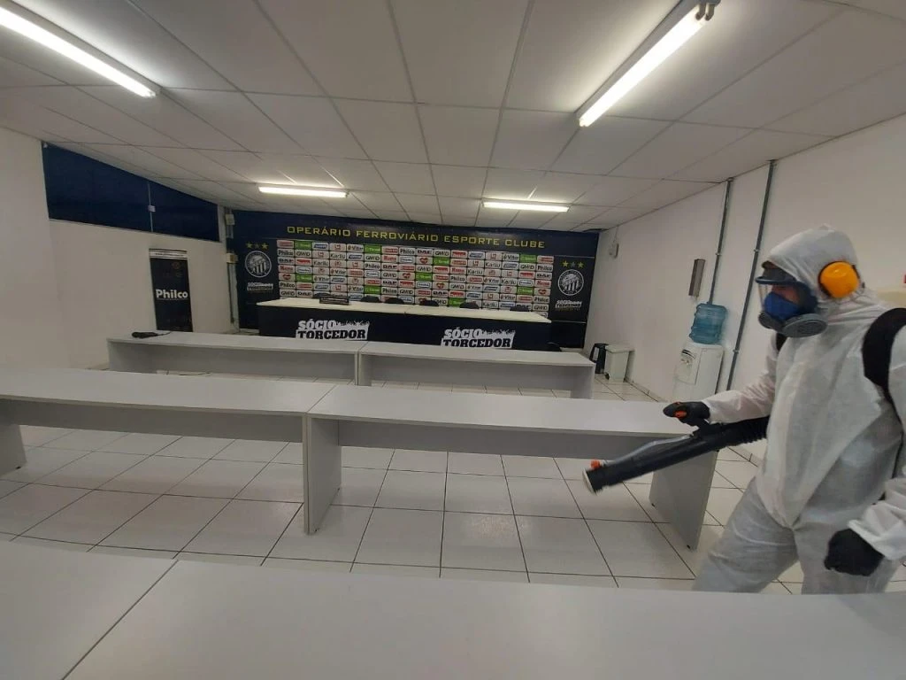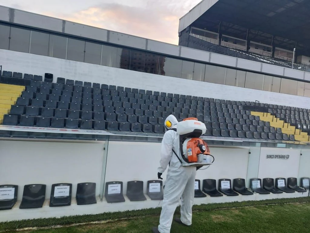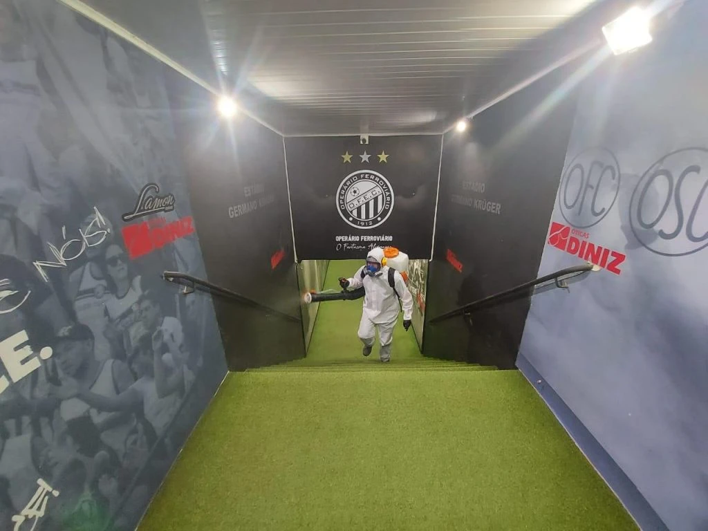 No procedimento, um profissional aplica o produto Combacter 800 (quaternário de amônio) nos ambientes do estádio. O objetivo é eliminar das superfícies fungos, bactérias e vírus. No Germano Krüger, a sanitização será realizada pela empresa Bioleader Controle Ambiental antes e após todos os jogos do Paranaense e do Campeonato Brasileiro da Série B.